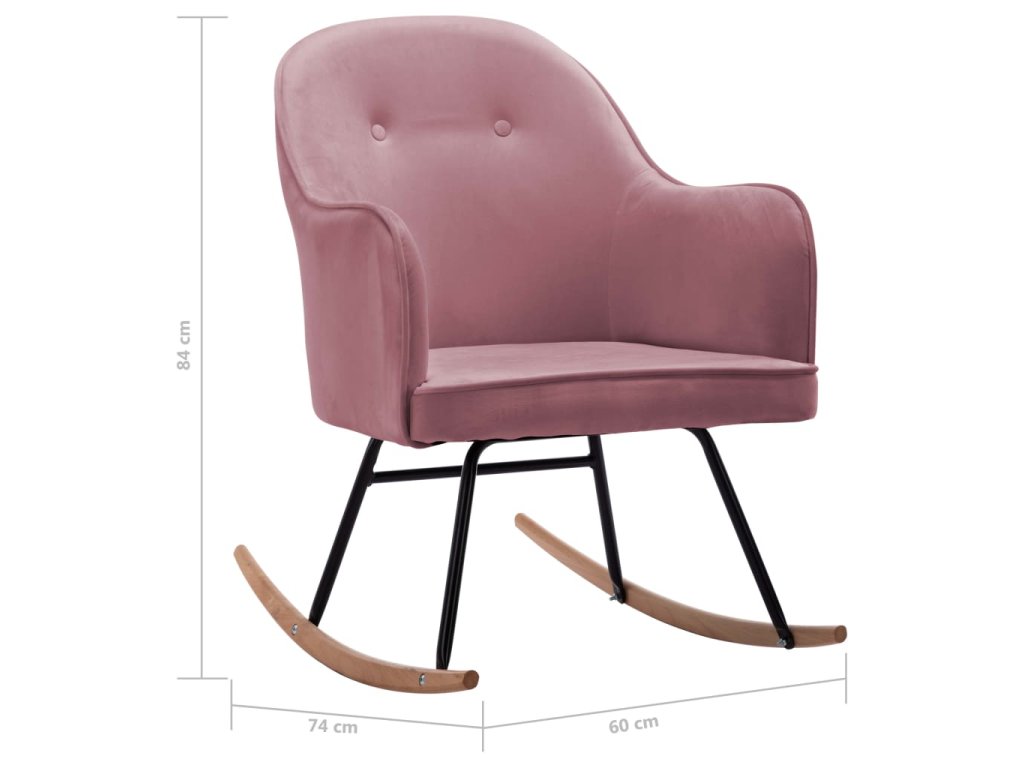 Houpací křeslo je čalouněné sametovým materiálem a je vyrobené z práškově lakovaného železného rámu, a proto je stabilní a zároveň měkké. Silně polstrovaný sedák zaručuje extra pohodlí při odpočinku v tomto houpacím křesle. Nohy z bukového dřeva navíc zajišťují vysokou stabilitu. Křeslo, designované s dlouhými houpacími nohami, se jen tak nepřeklopí.