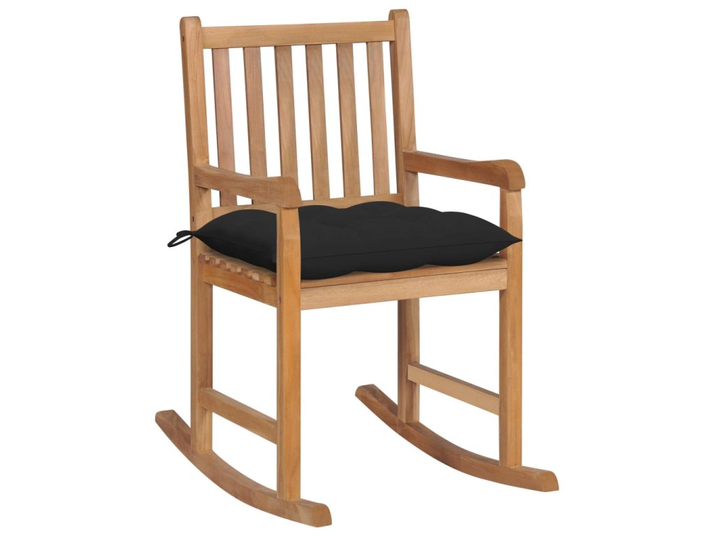 Houpací křeslo s černou poduškou masivní teak 3062779