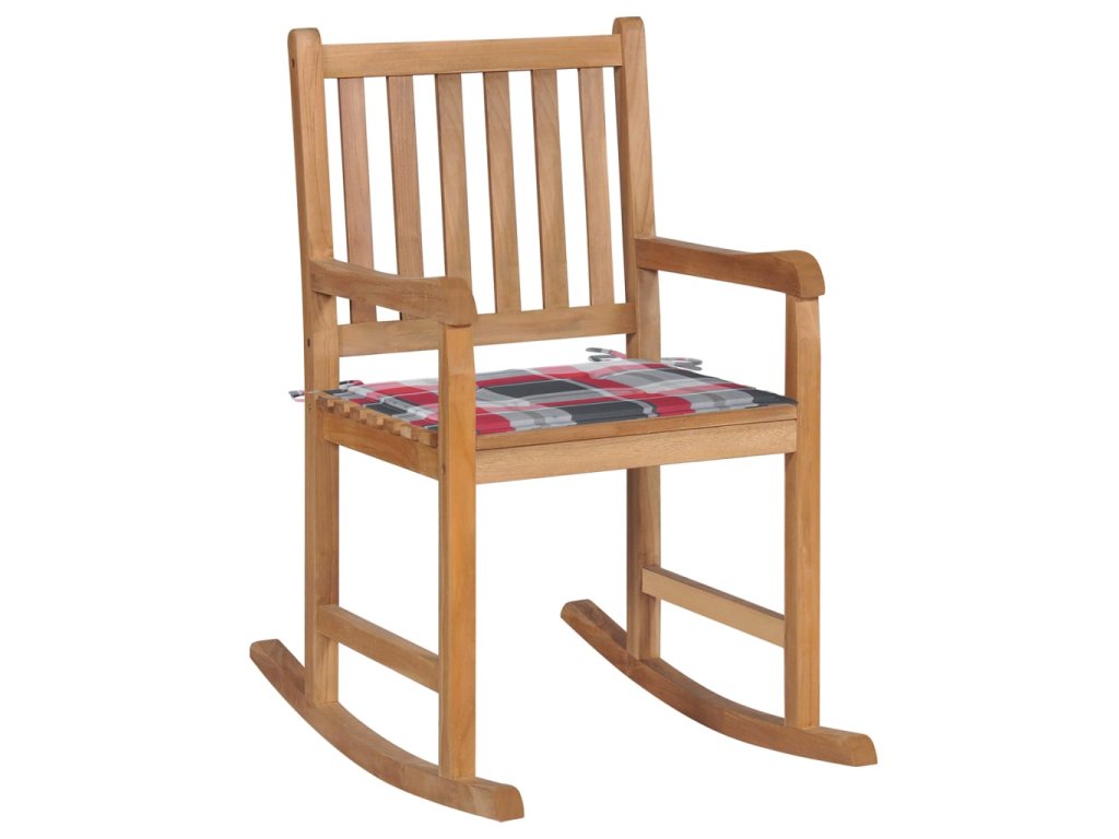 Houpací křeslo s červenou károvanou poduškou masivní teak 3062770