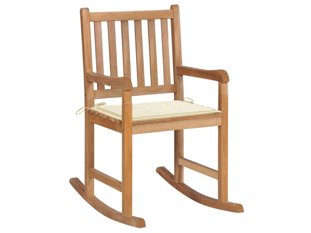 Houpací křeslo s krémovou poduškou masivní teak 3062759