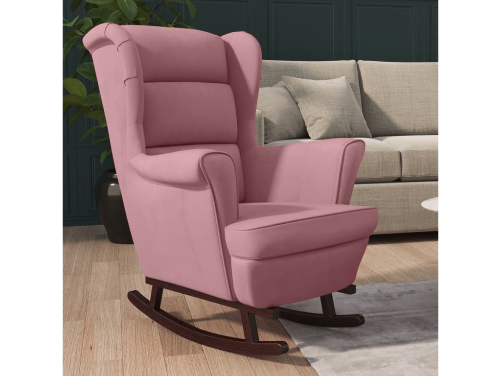 Houpací křeslo s křídly, růžový samet a masivní dřevo 329367