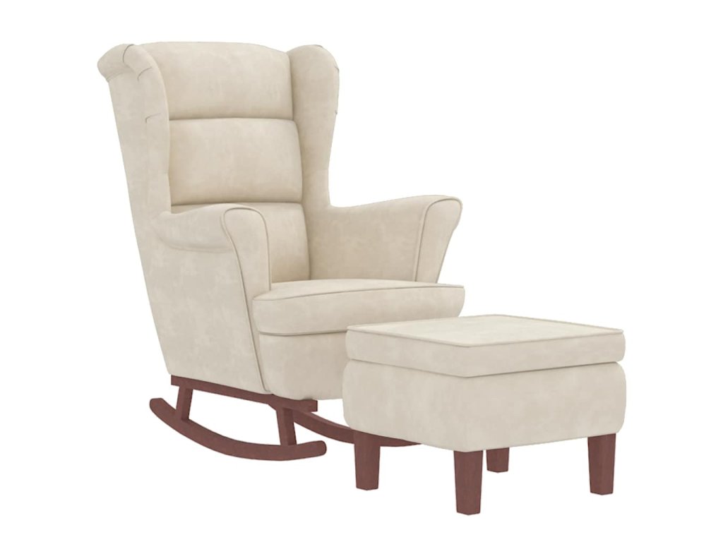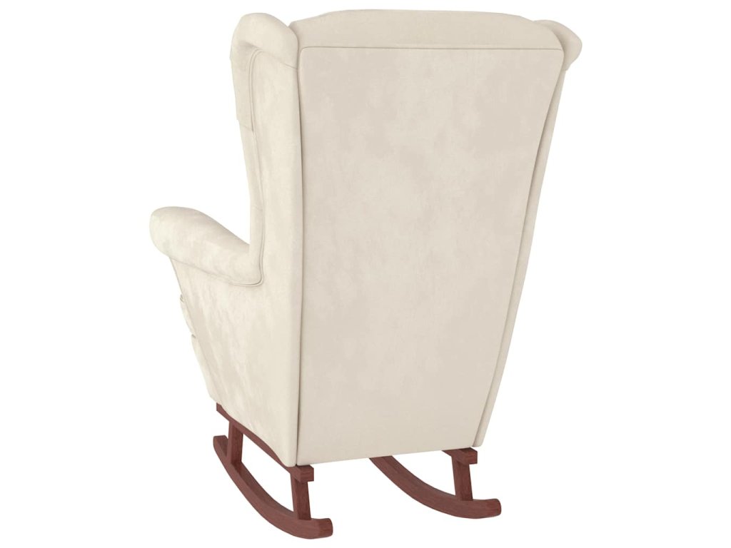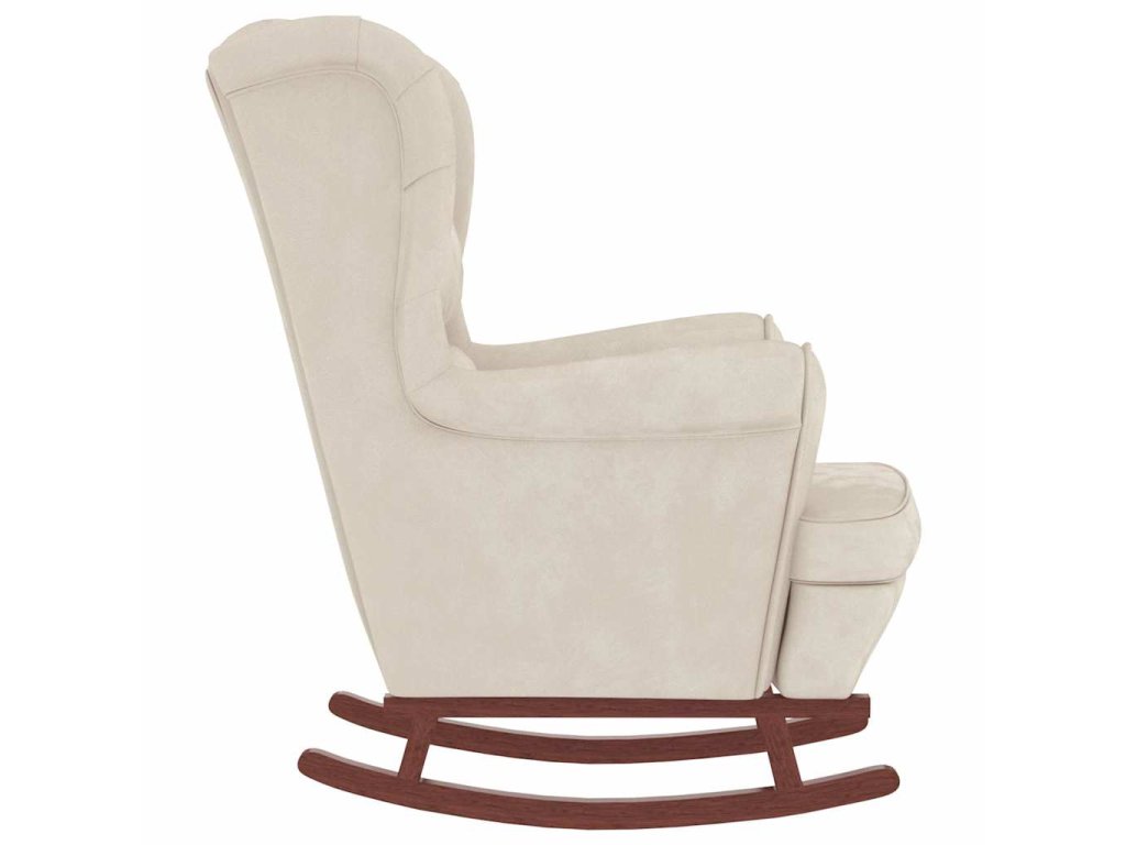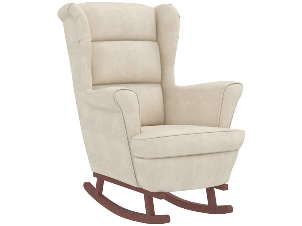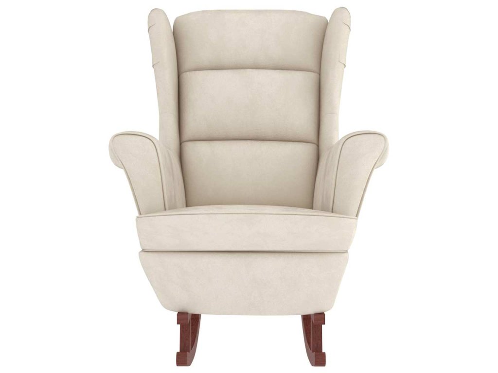 Houpací křeslo s opěradlem, krémový samet a masivní dřevo 3121239