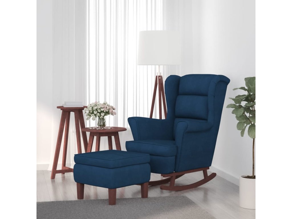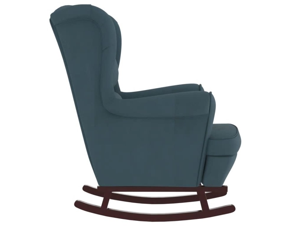 Houpací křeslo s opěradlem, modrý samet a masivní dřevo 3121229