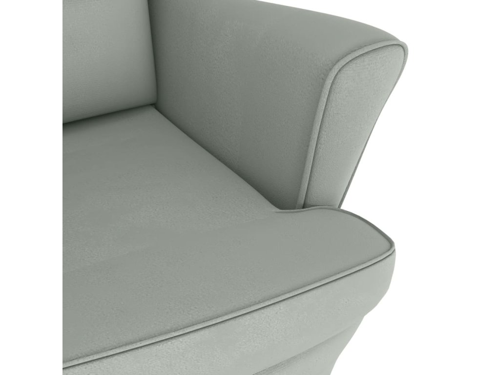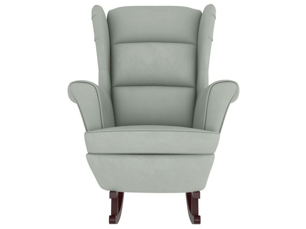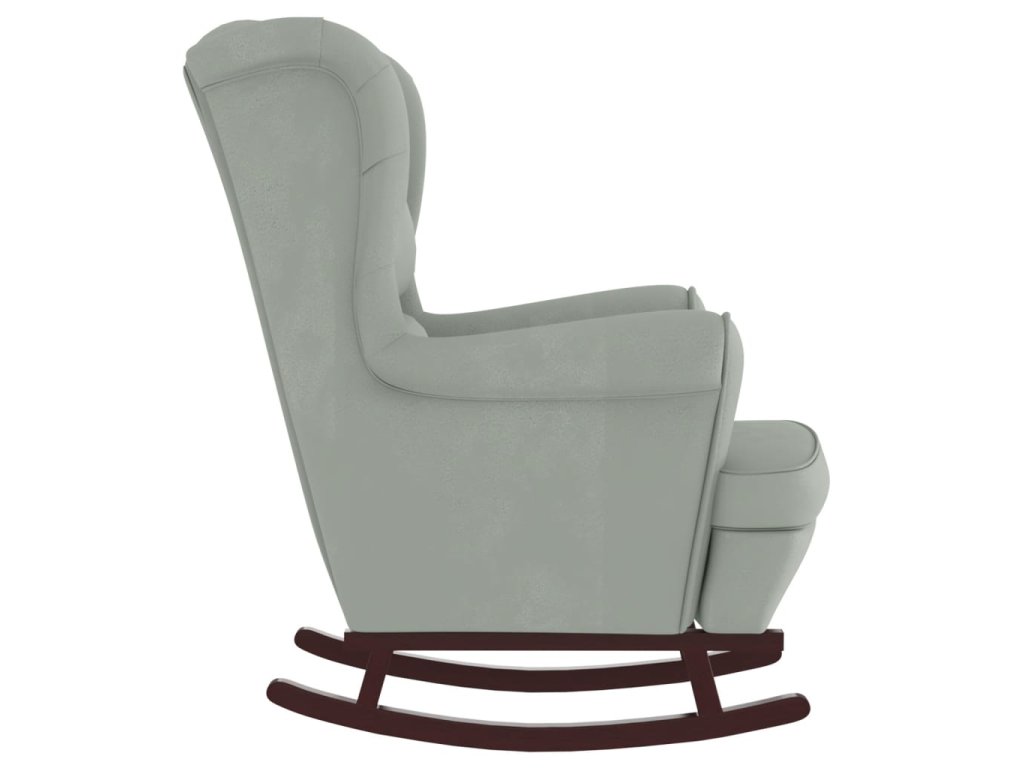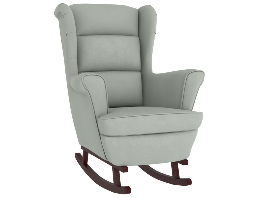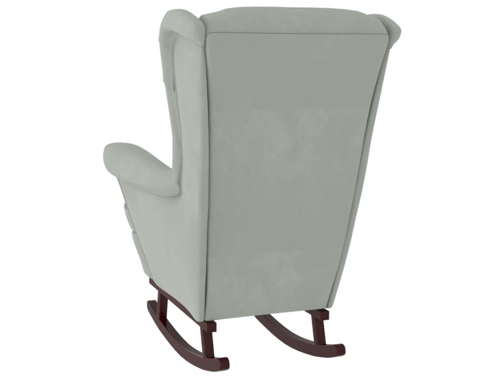 Houpací křeslo s opěradlem, světle šedý samet a masivní dřevo 3121230