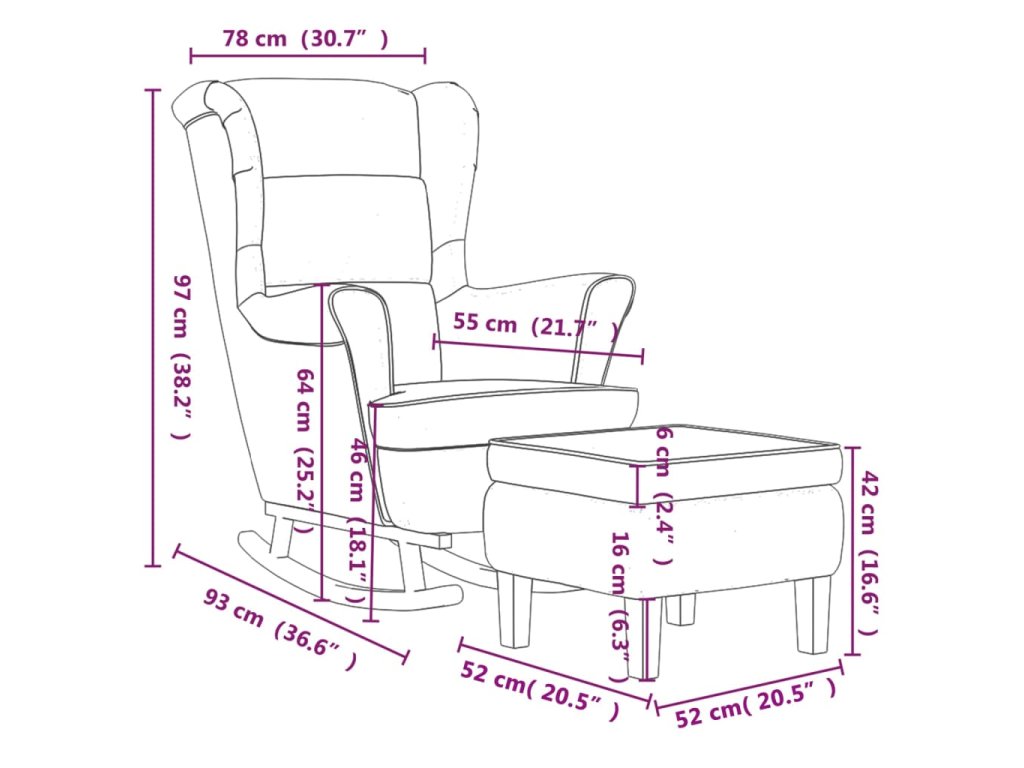 Toto houpací křeslo se stoličkou se stane ústředním bodem vašeho obývacího pokoje a také oblíbeným místem pro čtení nebo odpočinek.