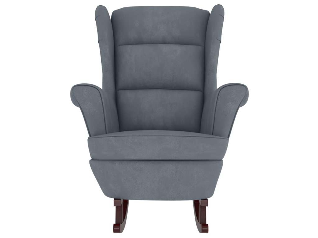 Houpací křeslo s opěradlem, tmavě šedý samet a masivní dřevo 3121231