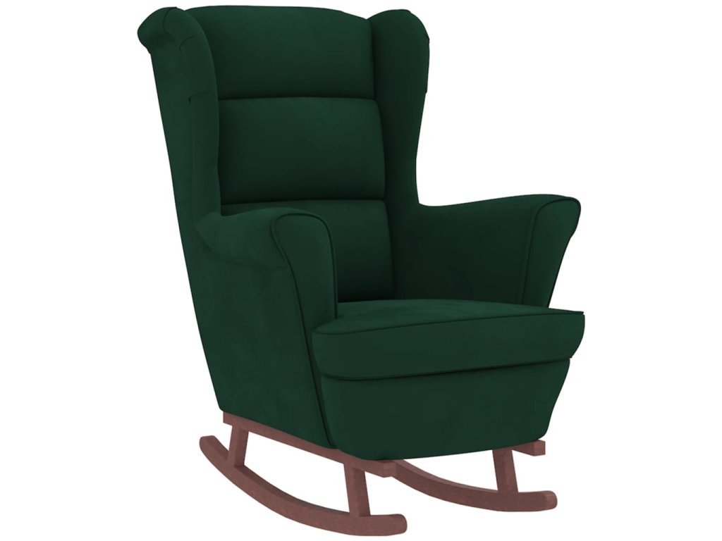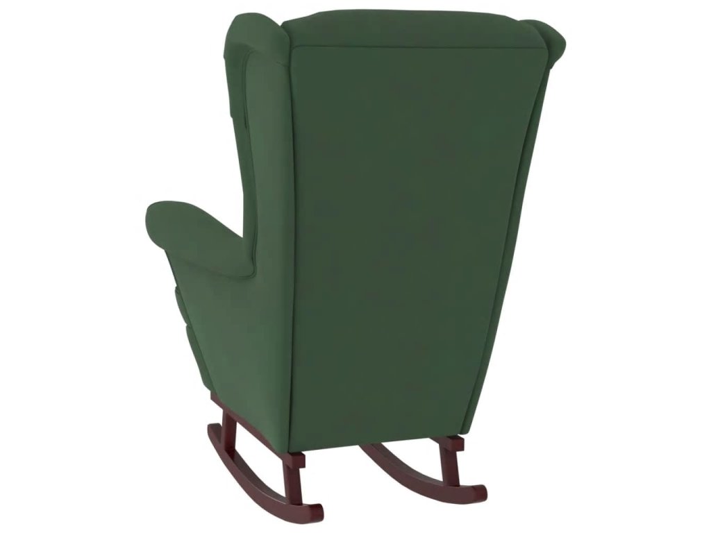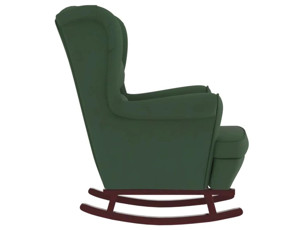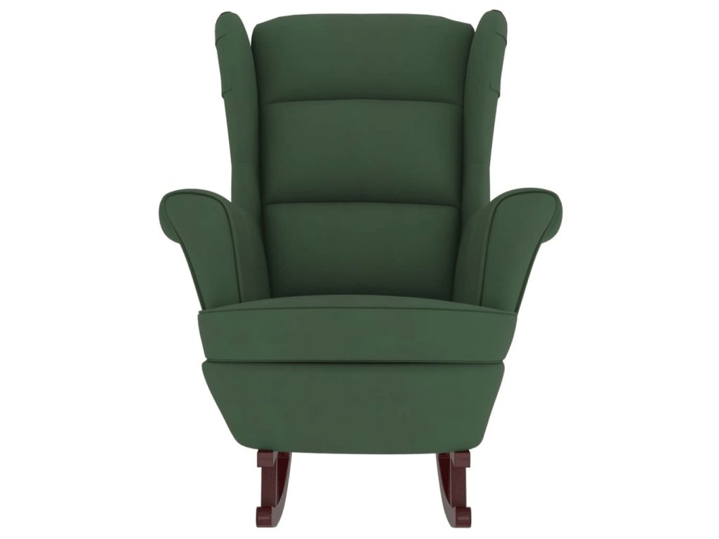 Houpací křeslo s opěradlem, tmavě zelený samet a masivní dřevo 3121232
