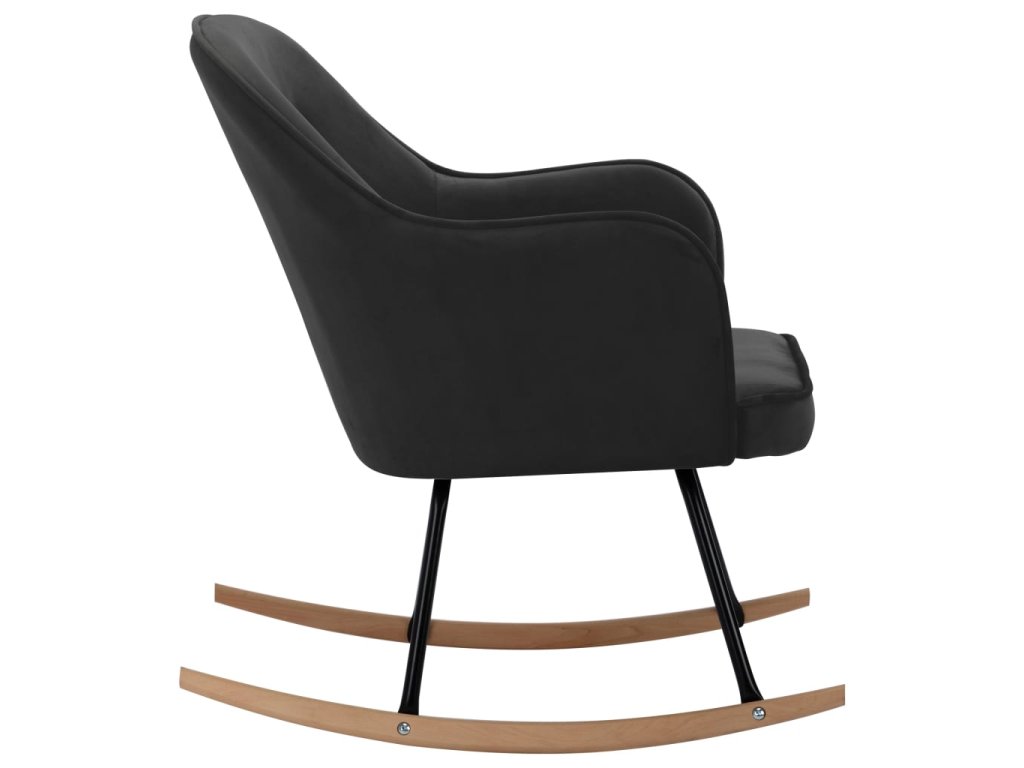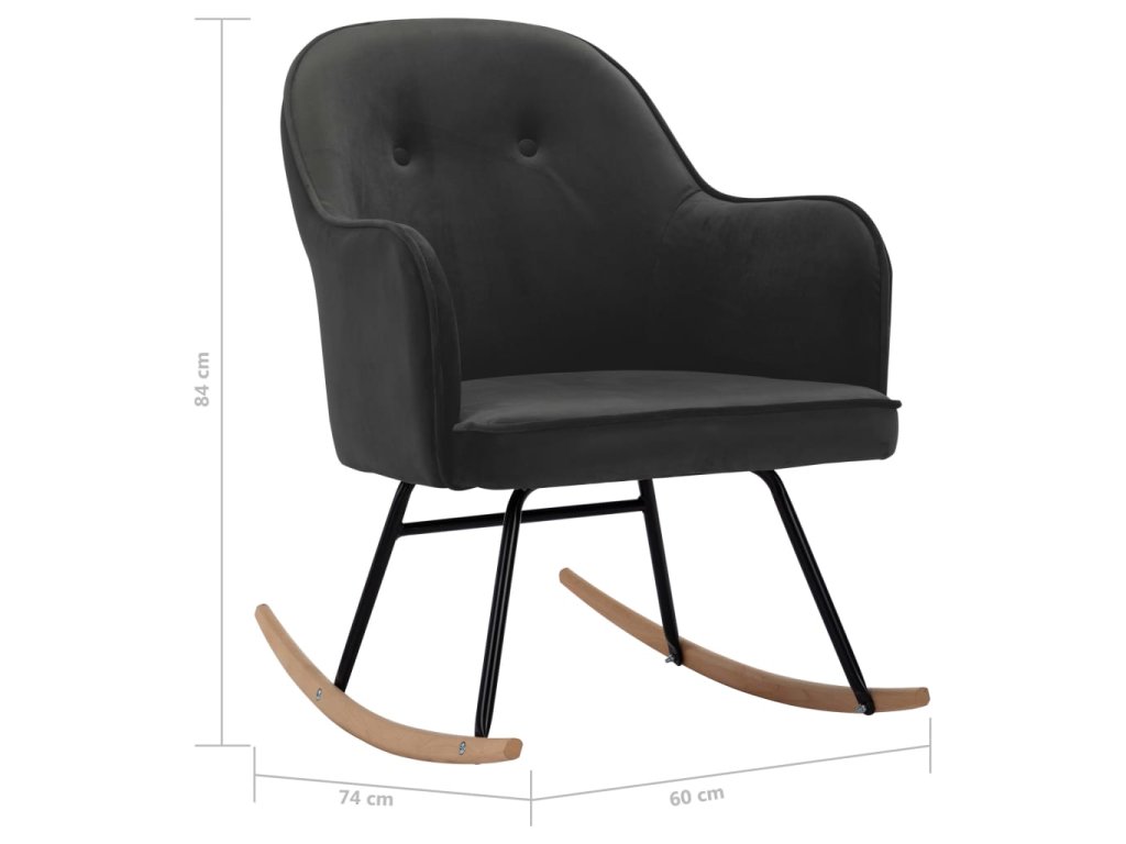 Houpací křeslo je čalouněné sametovým materiálem a je vyrobené z práškově lakovaného železného rámu, a proto je stabilní a zároveň měkké. Silně polstrovaný sedák zaručuje extra pohodlí při odpočinku v tomto houpacím křesle. Nohy z bukového dřeva navíc zajišťují vysokou stabilitu. Křeslo, designované s dlouhými houpacími nohami, se jen tak nepřeklopí.