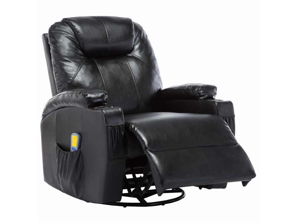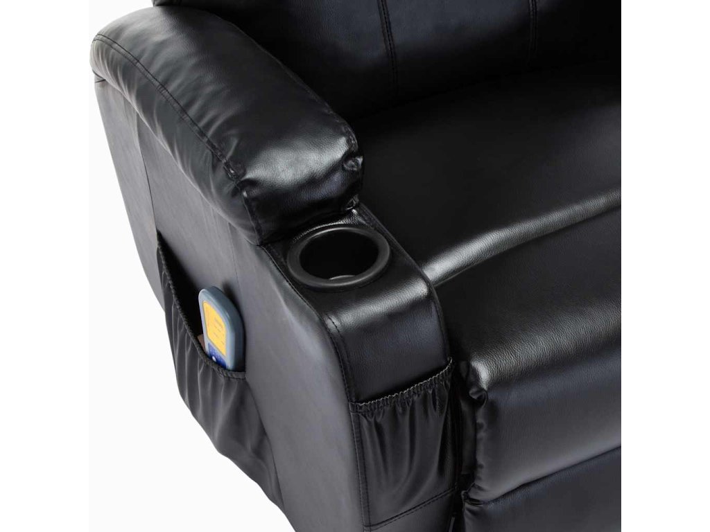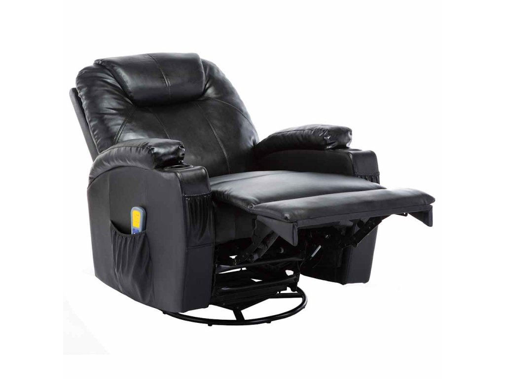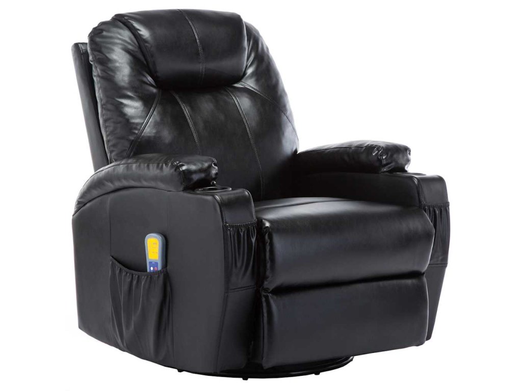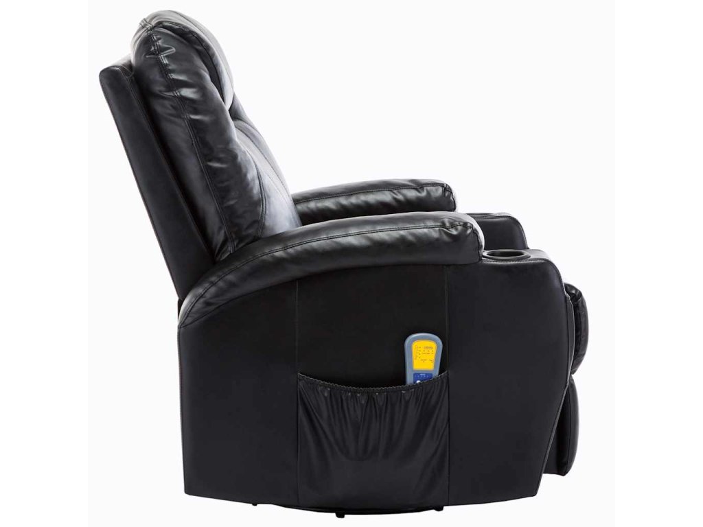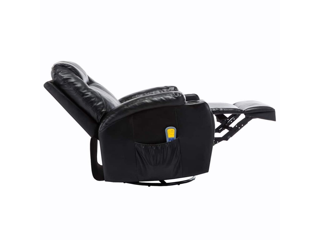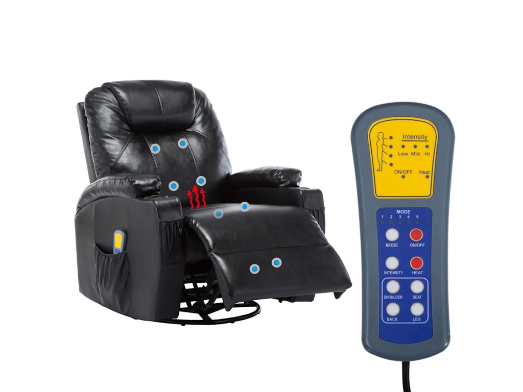 Čalouněné prémiovou umělou kůží spolu se silně polstrovaným sedadlem a opěradlem, toto otočné polohovací křeslo je navrženo tak, aby vám poskytlo maximální pohodlí. TV křeslo má otočný systém, takže máte 360° přehled o místnosti. Houpací masážní křeslo má 8 masážních uzlů, které uklidňují celé tělo. Díky funkci vytápění vydává polohovací křeslo příjemné teplo, což pomáhá zmírnit napětí. Opěradlo a opěrku nohou si můžete nastavit do různých úhlů podle vašich potřeb. Přiložené dálkové ovládání lze uložit do boční kapsy masážního křesla.