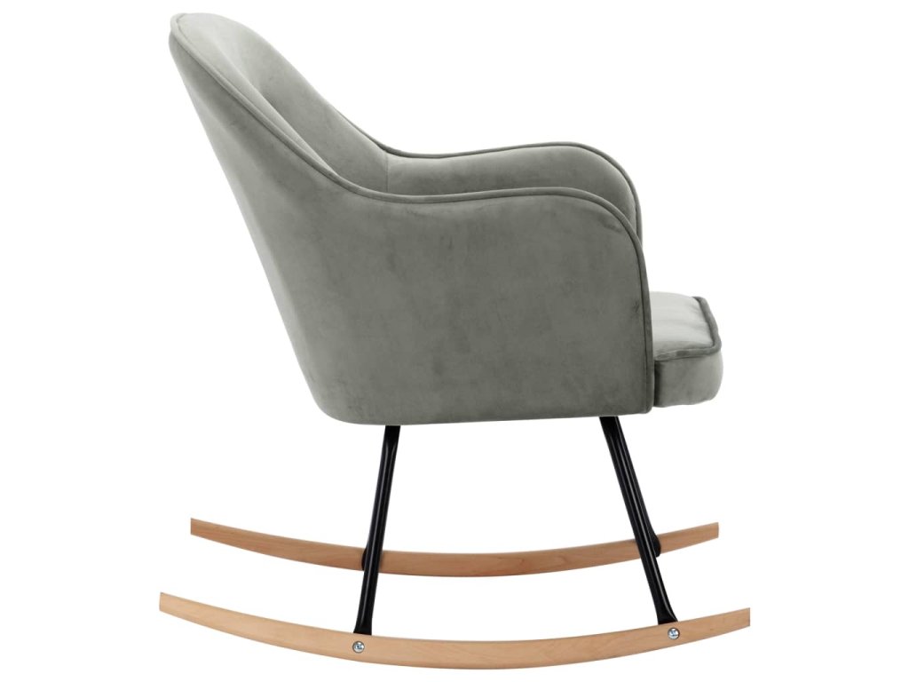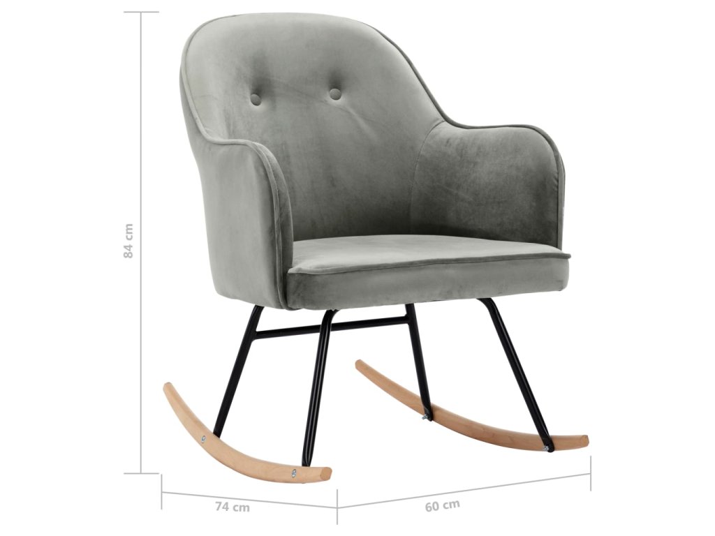 Houpací křeslo je čalouněné sametovým materiálem a je vyrobené z práškově lakovaného železného rámu, a proto je stabilní a zároveň měkké. Silně polstrovaný sedák zaručuje extra pohodlí při odpočinku v tomto houpacím křesle. Nohy z bukového dřeva navíc zajišťují vysokou stabilitu. Křeslo, designované s dlouhými houpacími nohami, se jen tak nepřeklopí.