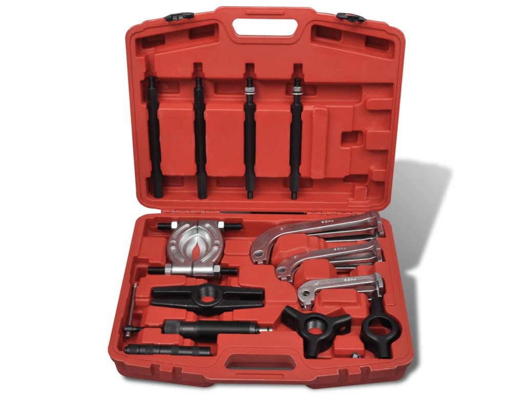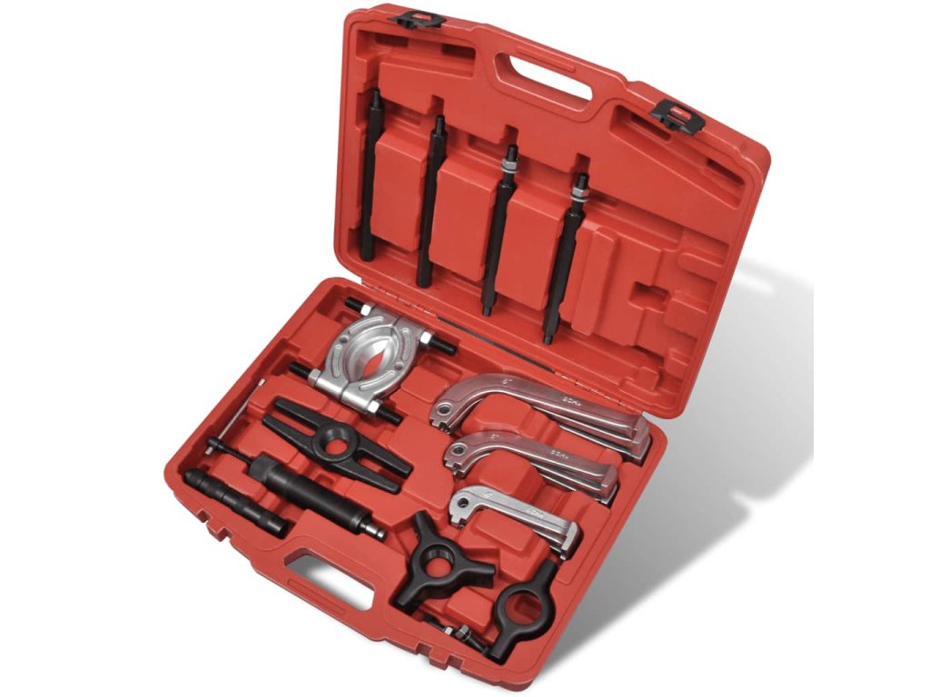 Tento hydraulický set stěhováky a oddělovačů je ideální pro údržbu železničních vozidel , mechanické montáže, doly a továrny na údržbu tím , pro odstranění kladek , ložisek , převodů a dalších komponentů . Tato sada obsahuje : 1 x oddělovač ložiska , 1 x nosník , 1 x adaptér středu , 1 x třílůžkový hlava , 1 x dvoulůžkový hlava, 3 x 4 " stěhovák nohy , 3 x 6 " stěhovák nohy , 3 x 8 " stěhovák nohy , 1 x píst díl , 1 x 2 " prodlužovací tyč , 1 x 4 " prodlužovací tyč , 4 x 8 " prodlužovací tyč , 1 x 10 tun hydraulický píst a 3 x šroub . Kufr je dobře navržen pro dlouhou životnost při každodenním používání a pro snadnou přepravu .