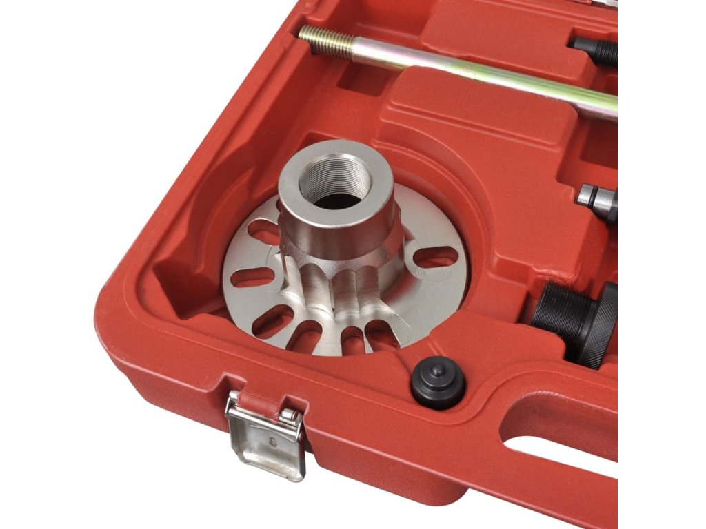 Příslušenství pro tahání příruby k provozu s kladivem a pro odstraňování náboje kol jsou zahrnuty v teto hydraulické sadě stahováků na náboje kol a kladiva . S maximální kapacitou 10 t ,hydraulický vřeteno je dostatečné pro splnění požadavků na záchranu vozidla.Mnoho postupů opravy a údržby automobilů , jako je kontrola ložisek zadních kol a oleje , kontrola brzdového bubnu a patky musí být provedeny po demontáži nábojů kola . Tak že tyto velké a pravidelné postupy , se stávají energiovo a časově náročné . Ale s tímto hydraulickým stahovákem pro náboje kola v dosahu , budete moci získat dvakrát výsledek s polovičním úsilím . Všechny dodané kuší ve kufříku můžete najít snadno na první pohled kvůli uspořádanému vystavení v kufříku jak pro skladování tak pro transport