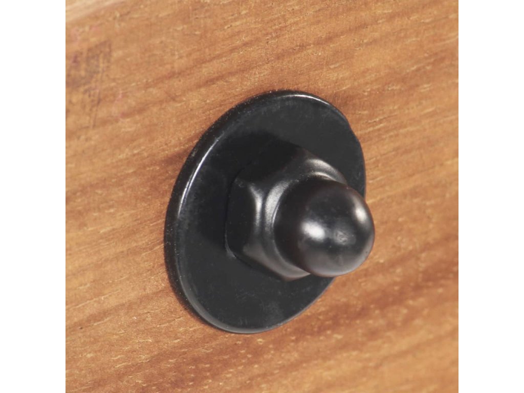 - Materiál: železo s černou povrchovou úpravou, masivní mangovníkové dřevo se starovenkovským hnědým povrchem