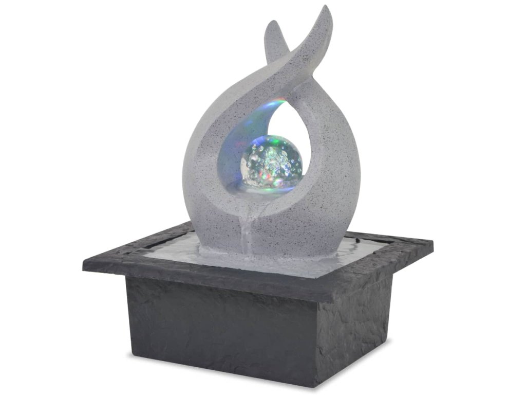 Tato fontánka je vyrobena z polyresinu. Její kaskády jsou osvětleny LED světly, což vytváří ohromující efekt, a to zejména za tmy. Tryská z ní hned několik proudů vody. Jejich zvuk vytváří klidnou, meditativní atmosféru, která je ideální pro relaxaci. Součástí balení je i kvalitní pumpa, díky které je fontána bezpečná a správně funguje.