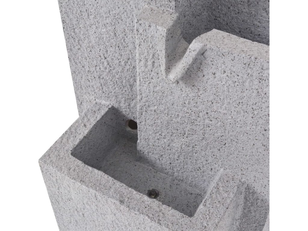 Tato fontánka je vyrobena z polyresinu. Její kaskády jsou osvětleny LED světly, což vytváří ohromující efekt, a to zejména za tmy. Tryská z ní hned několik proudů vody. Jejich zvuk vytváří klidnou, meditativní atmosféru, která je ideální pro relaxaci. Součástí balení je i kvalitní pumpa, díky které je fontána bezpečná a správně funguje.