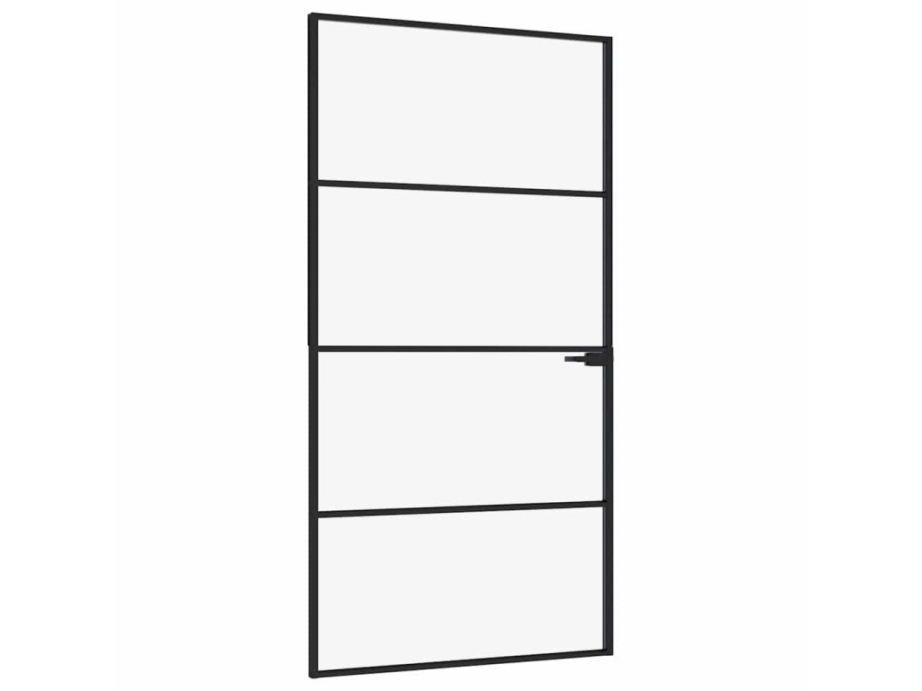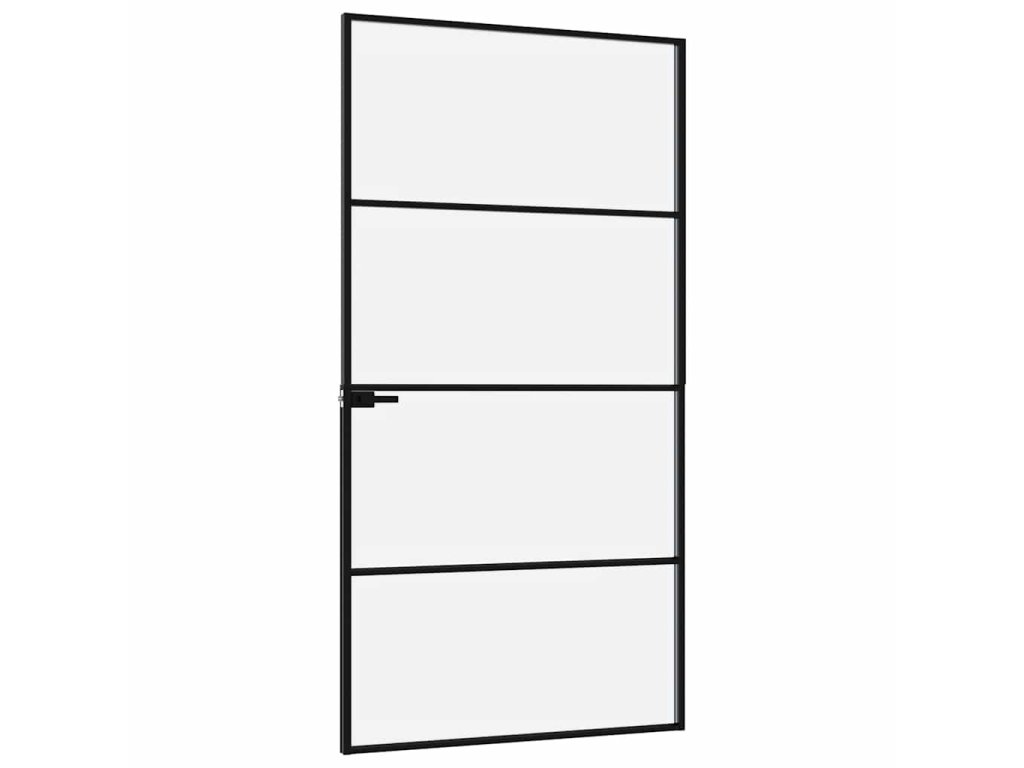 Interiérové dveře černé 102x201,5 cm tvrzené sklo a hliník úzké 153661