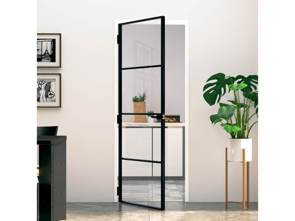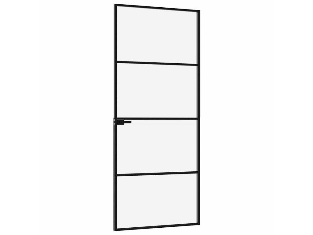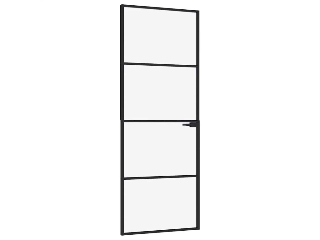 Interiérové dveře černé 76x201,5 cm tvrzené sklo a hliník úzké 153658