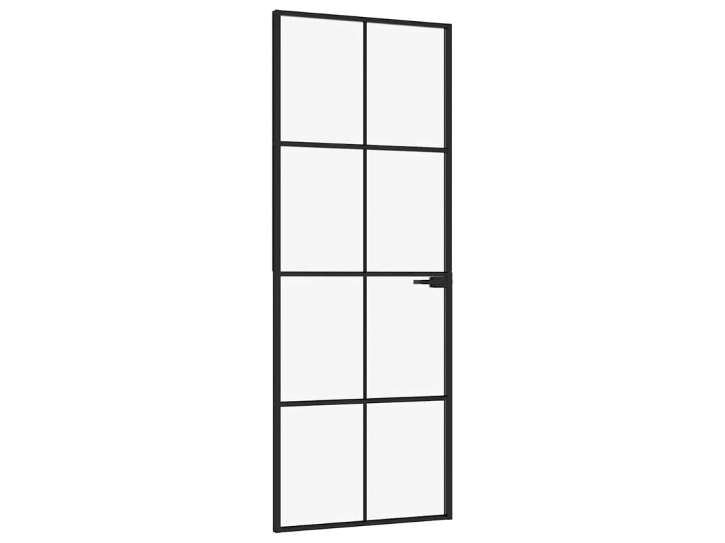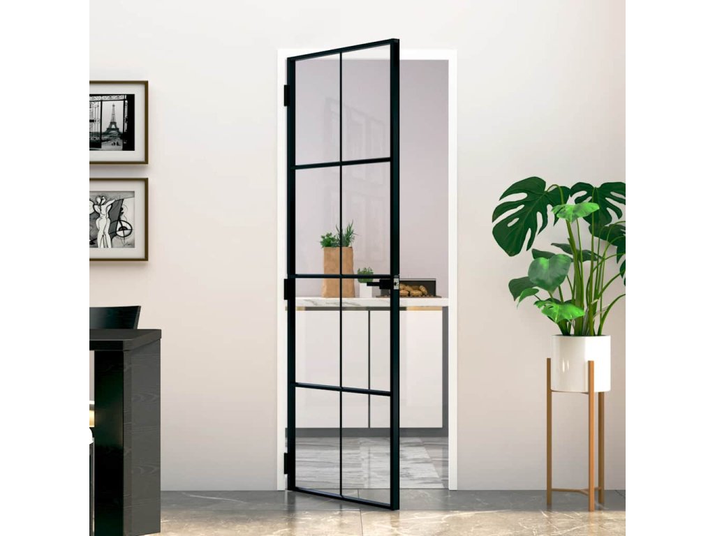 Interiérové dveře černé 76x201,5 cm tvrzené sklo a hliník úzké 153662