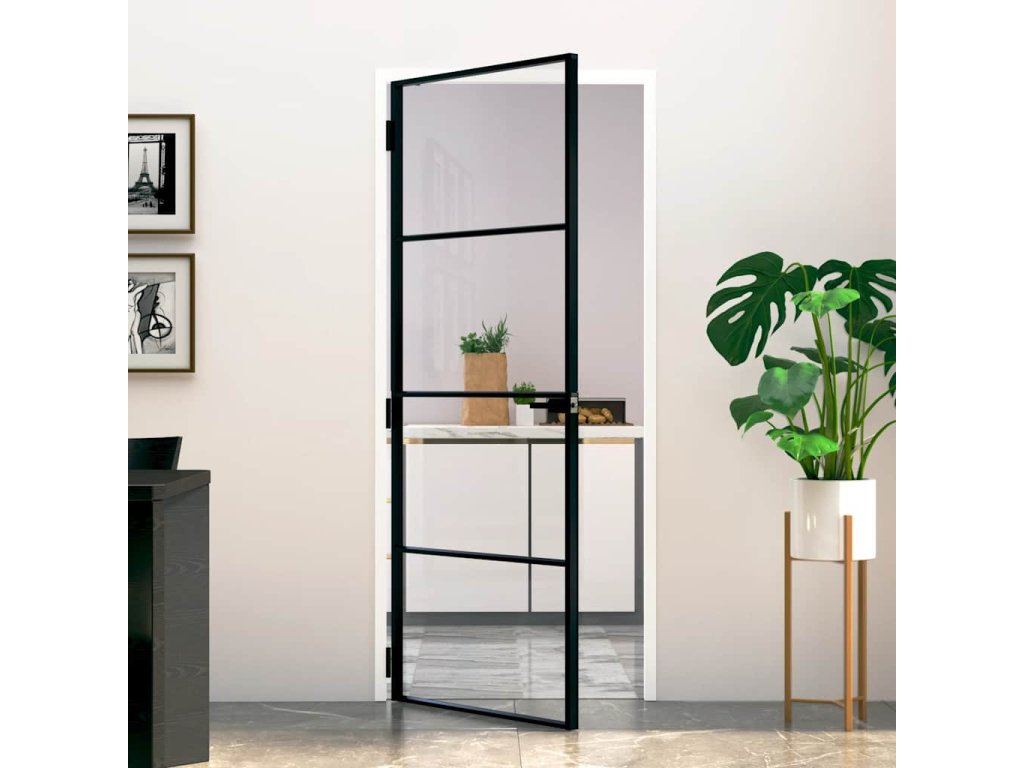 Interiérové dveře černé 83x201,5 cm tvrzené sklo a hliník úzké 153659