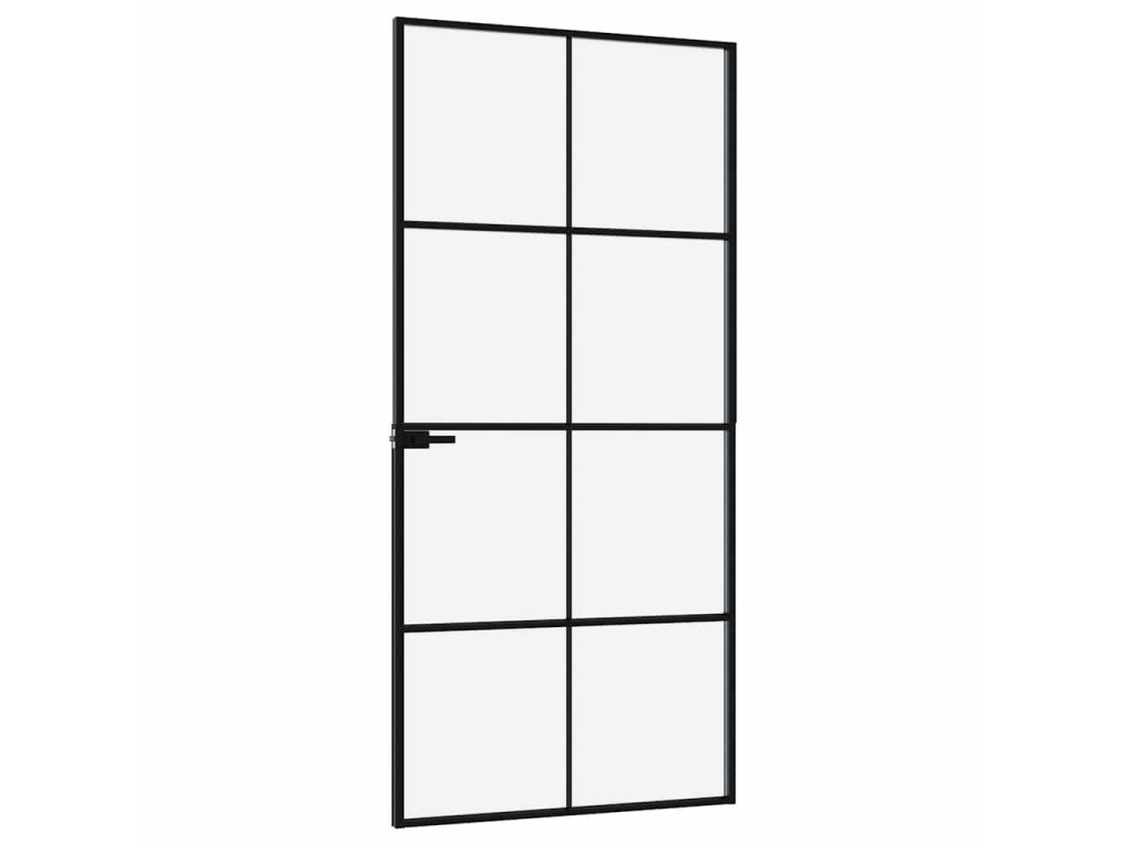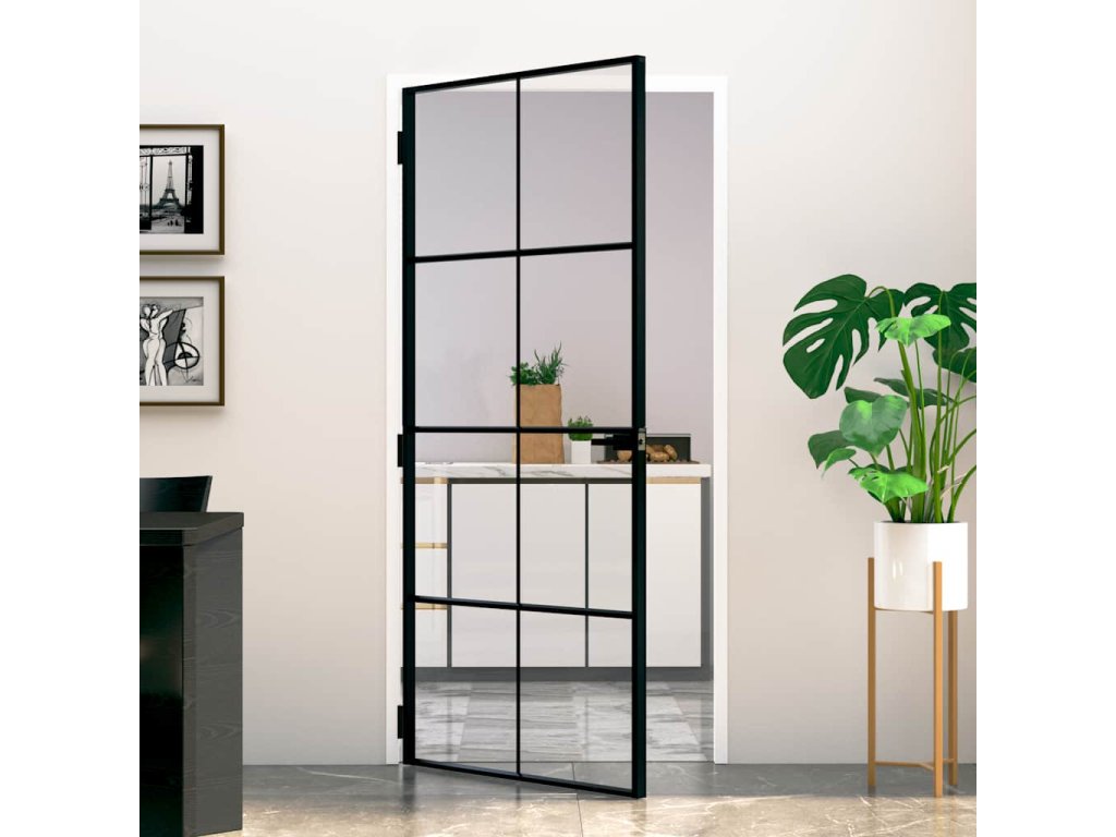 Interiérové dveře černé 93x201,5 cm tvrzené sklo a hliník úzké 153664