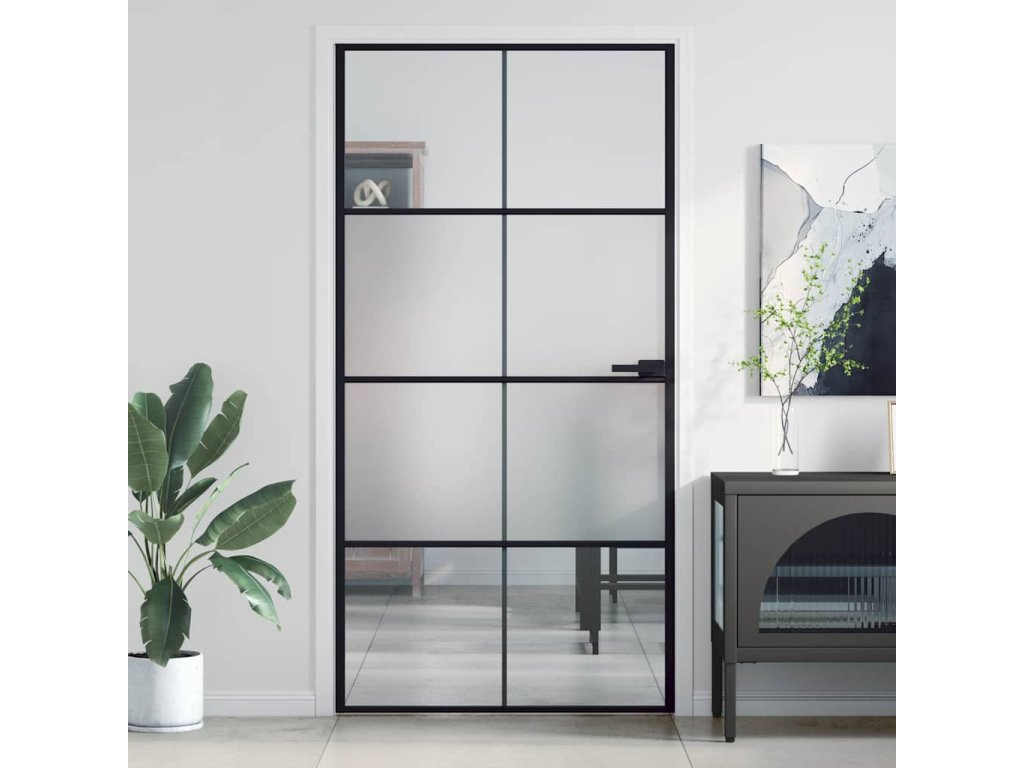 Interiérové dveře úzké černé 102,5x201,5 cm tvrzené sklo hliník 155130