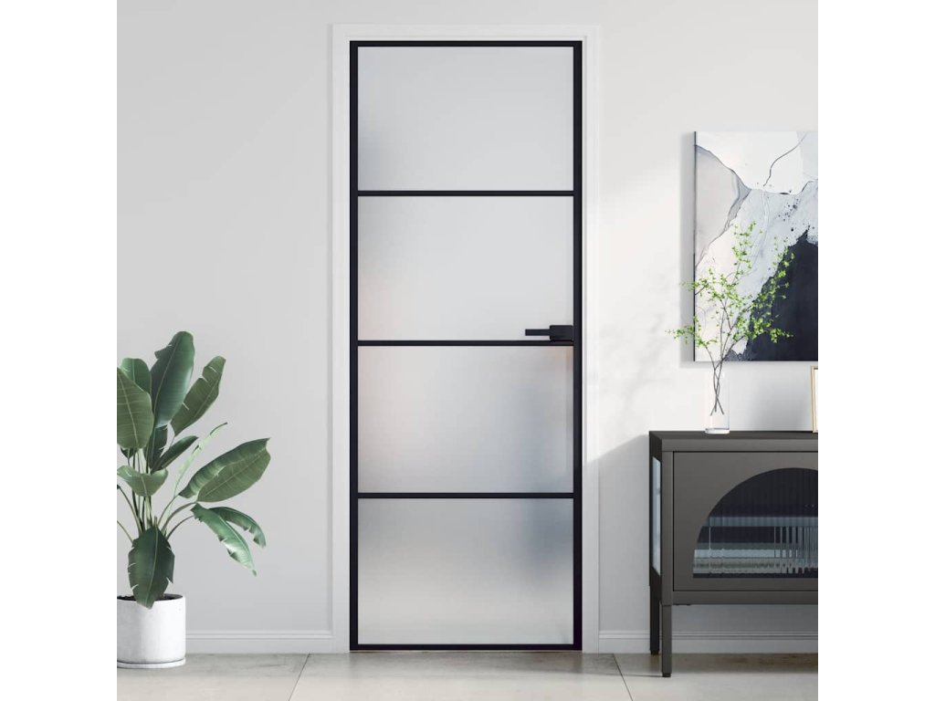 Interiérové dveře úzké černé 76x201,5 cm tvrzené sklo a hliník 155117