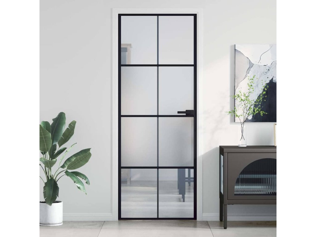 Interiérové dveře úzké černé 76x201,5 cm tvrzené sklo a hliník 155124