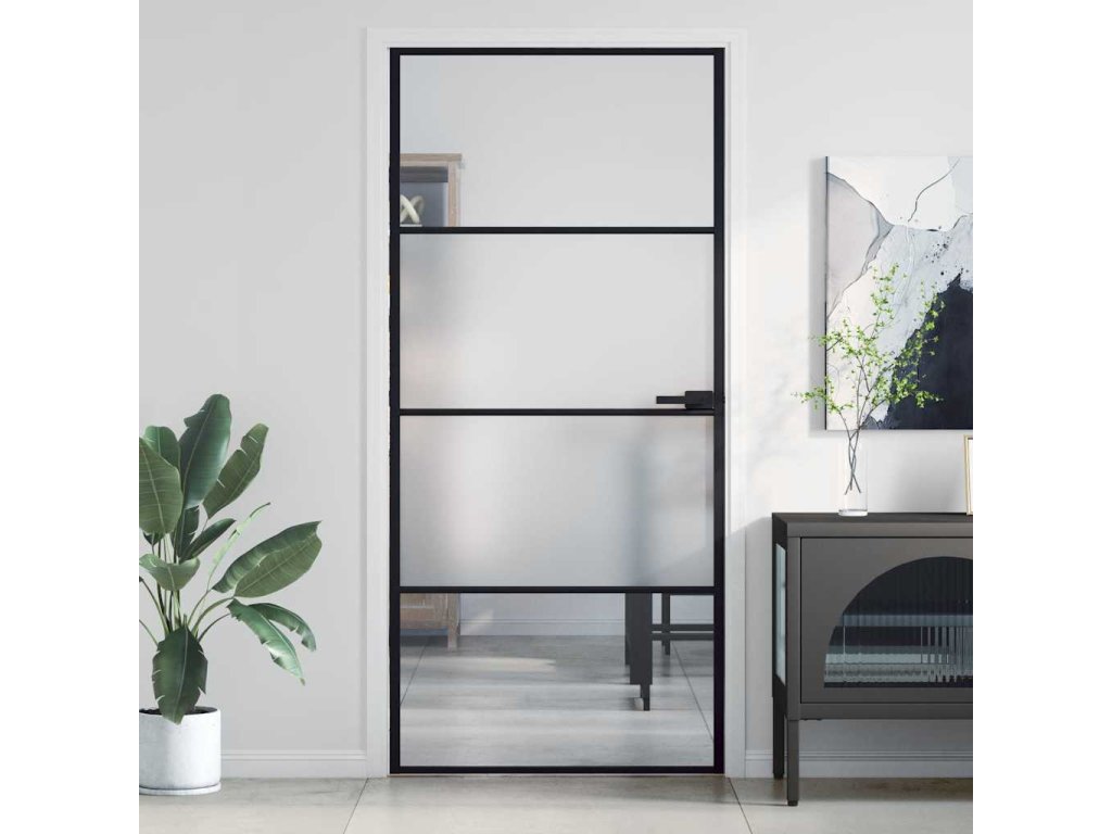 Interiérové dveře úzké černé 93x201,5 cm tvrzené sklo a hliník 155120