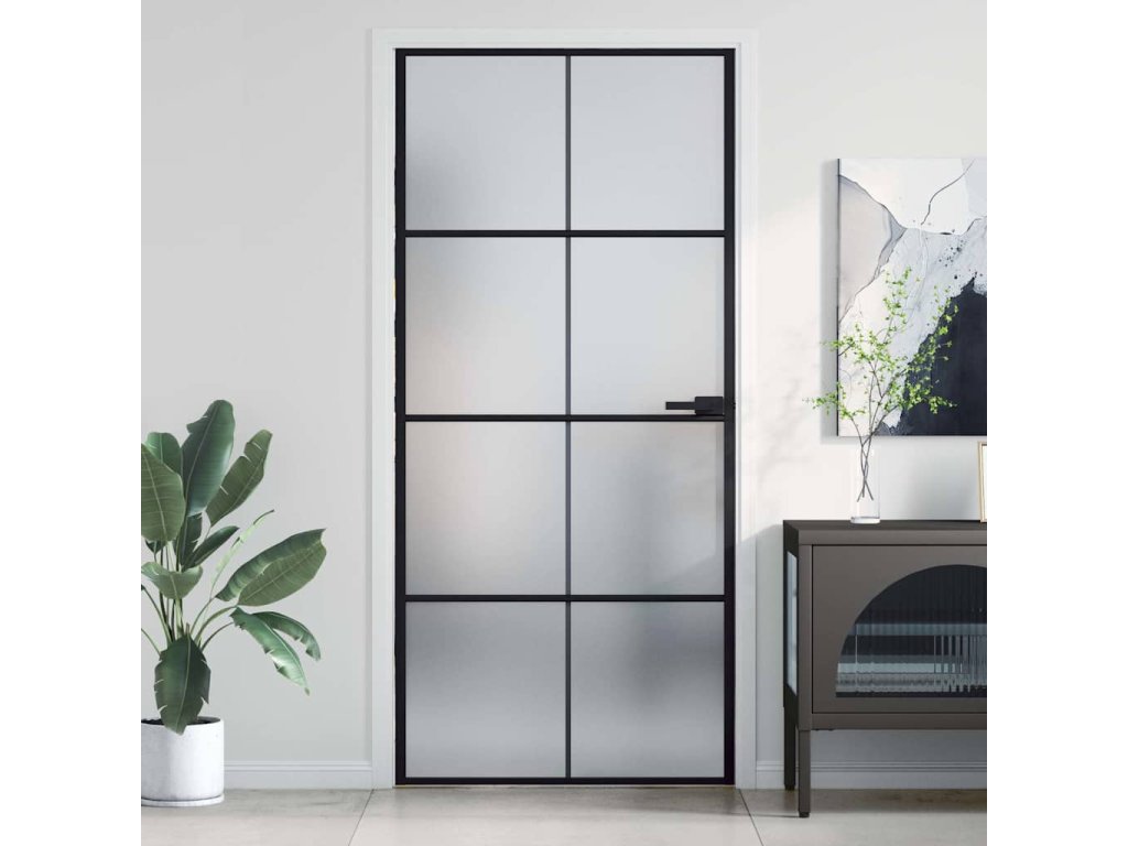 Interiérové dveře úzké černé 93x201,5 cm tvrzené sklo a hliník 155129