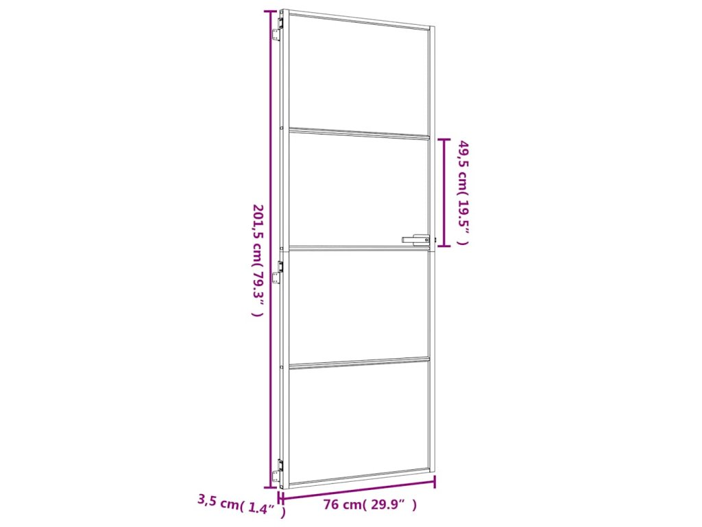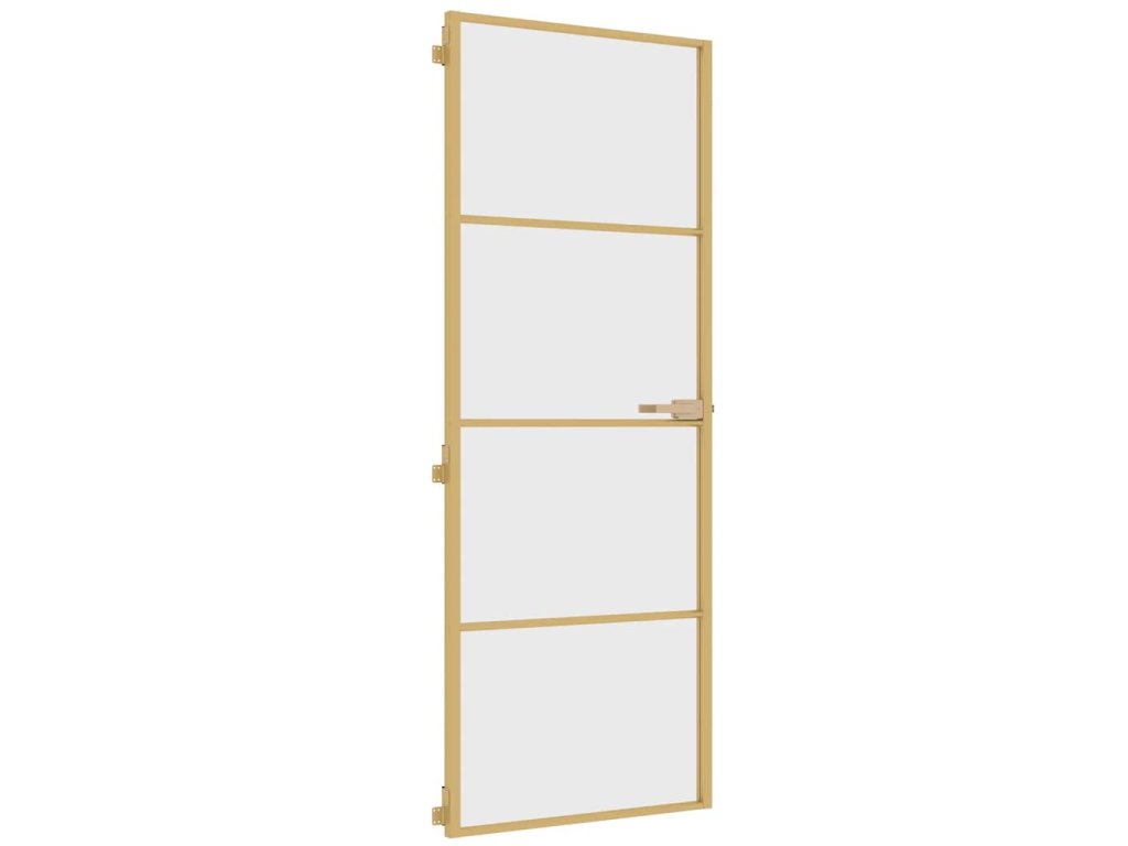 Interiérové dveře úzké zlaté 76x201,5 cm tvrzené sklo a hliník 155132