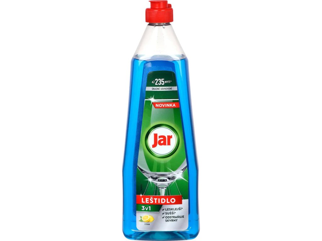 Jar leštidlo do myčky s vůní citronu zajišťuje lesklejší, sušší a dokonale čisté nádobí. Díky snadnému dávkovacímu uzávěru také pomáhá minimalizovat rozlití a nepořádek při doplňování. Jeho množství vydrží až na 235 umytí. Dosáhněte nejlepšího oslnivého lesku a čistoty díky leštidlu do myčky 3v1 od značky Jar