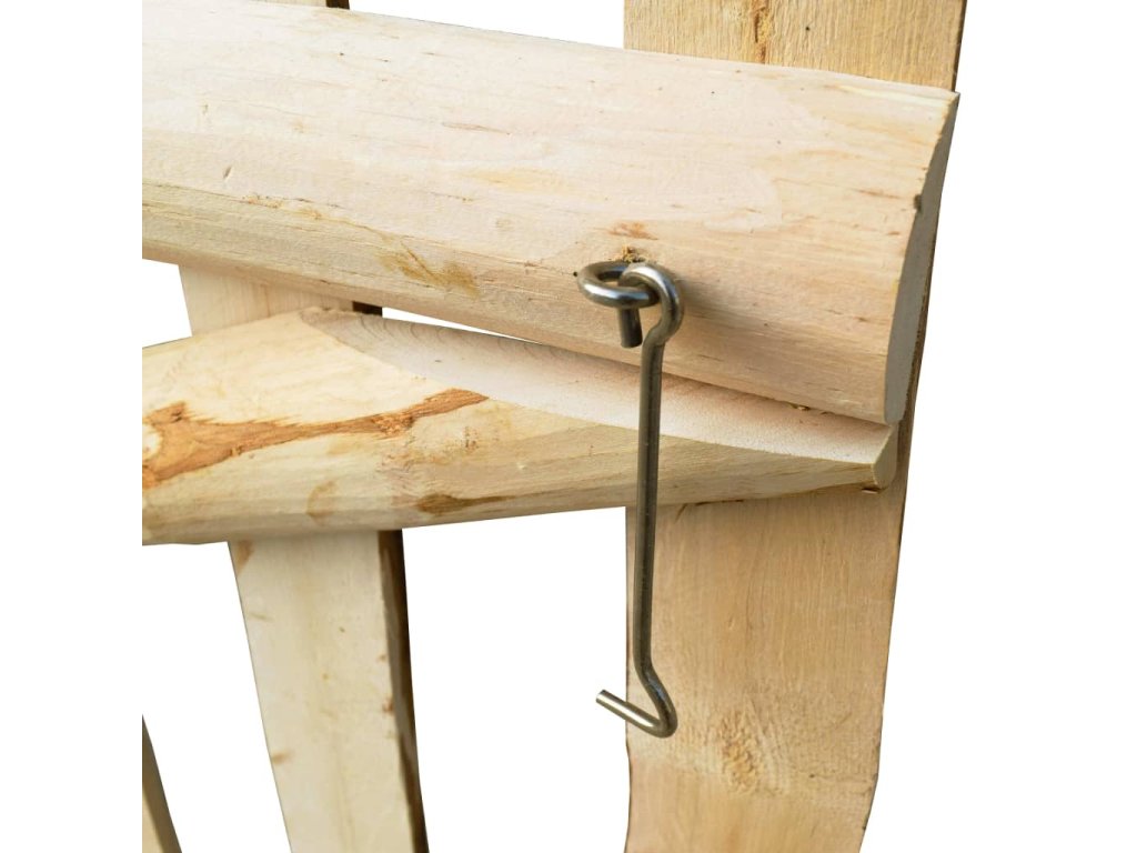 Pevná plotová branka je vyrobena ze svislých sloupků a latěk, které jsou vodorovné i příčné, takže je pevná, stabilní a hodně toho vydrží. Zahradní branka se dodává s kovovými panty, šrouby a háčkem.