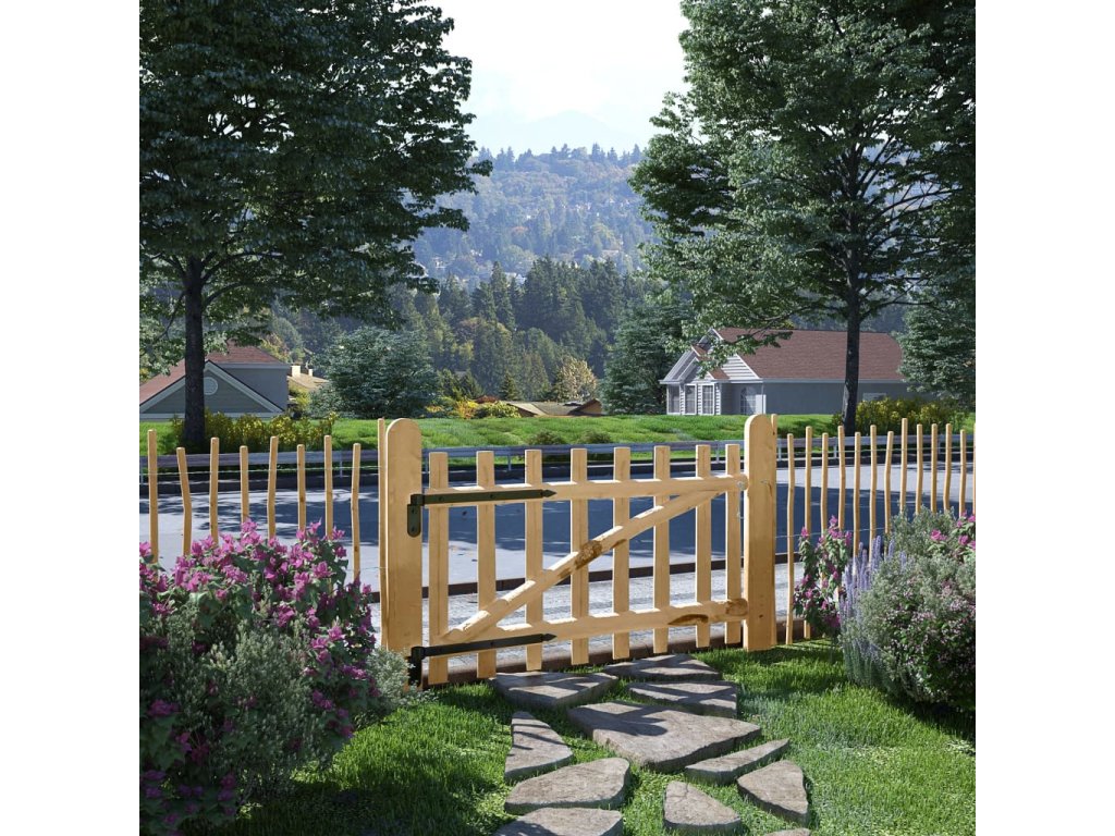 Tato dřevěná plotová branka vyzařuje rustikální kouzlo a skvěle se skrze ni dostanete na vaši zahradu nebo terasu.