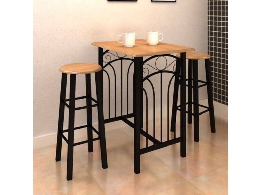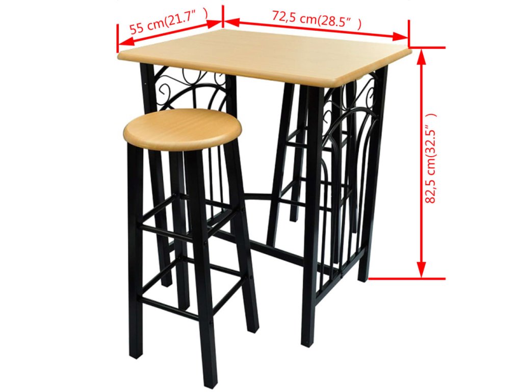 Tento stylový a moderní snídaňový set obsahuje obdélníkový snídaňový stůl a 2 vysoké židle v provedení ze světlohnědého dřeva. Je ideální pro menší domovy a byty nebo pokud přemýšlíte jak ušetřit místo a zároveň zkrášlit své bydlení. Bez problémů se hodí do jakékoli kuchyně nebo obývacího pokoje.