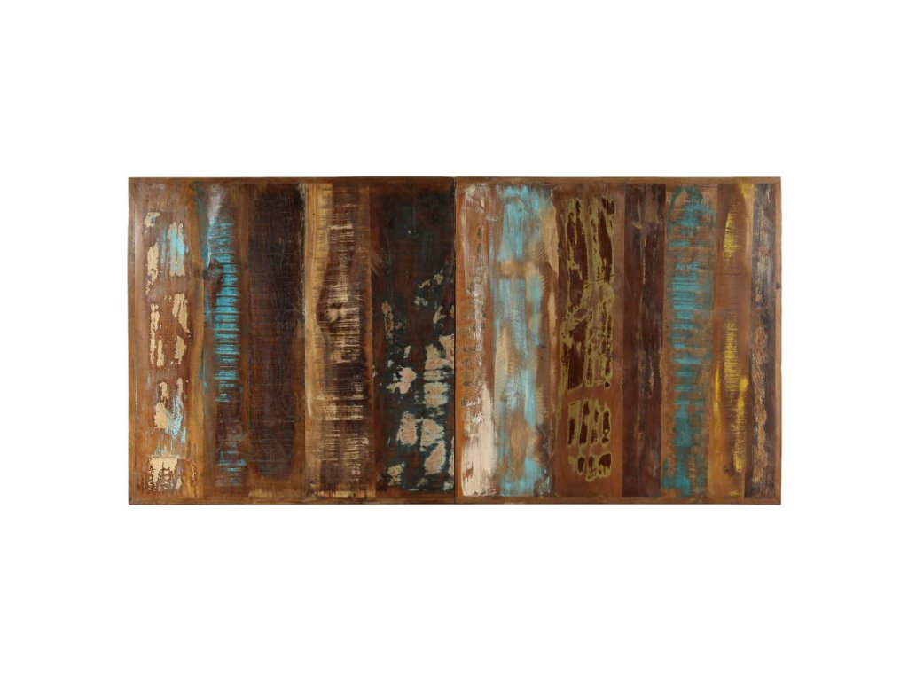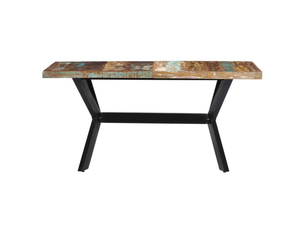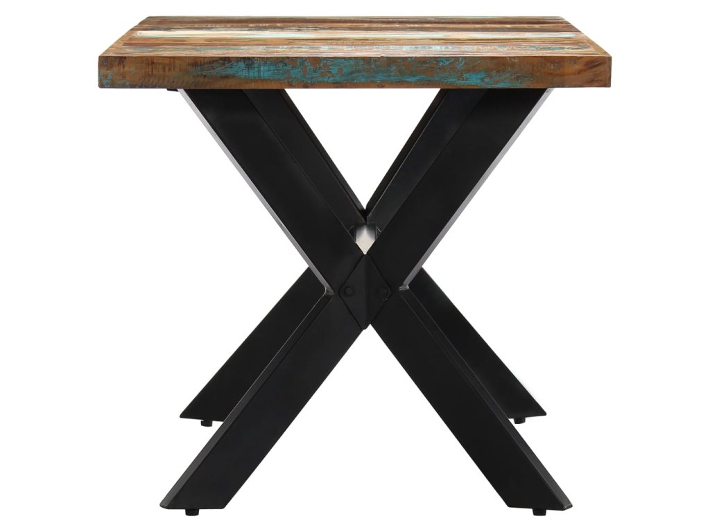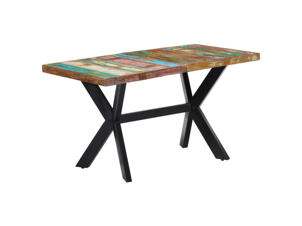 Tento dřevěný jídelní stůl se pyšní vintage elegancí. Konstrukce z masivního recyklovaného dřeva v kombinaci s ocelovým křížovým rámem působí industriálním a vintage dojmem. Jedná se o atraktivní nadčasový doplněk do vašeho bydlení.
