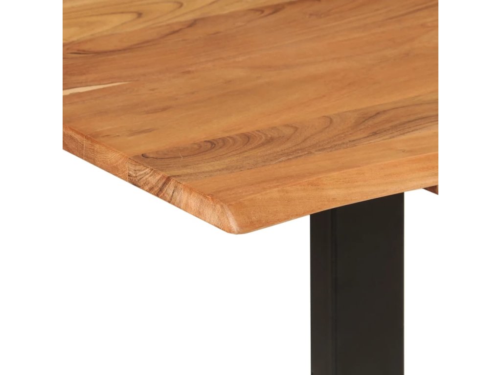 Tento jídelní stůl je vyrobený z masivní akácie, tropického tvrdého dřeva, které je oceňované pro svou pevnost a bohatou kresbu. Živý tvar a okraje stolní desky jsou záměrně opracované tak, aby do vašeho interiéru přinesly původní charakter a přirozený dojem stromu. Každý krok procesu se provádí s největší péčí, ať už jde o leštění, natírání nebo lakování. Ocelové nohy doplňují industriální vzhled a přispívají k robustní konstrukci.