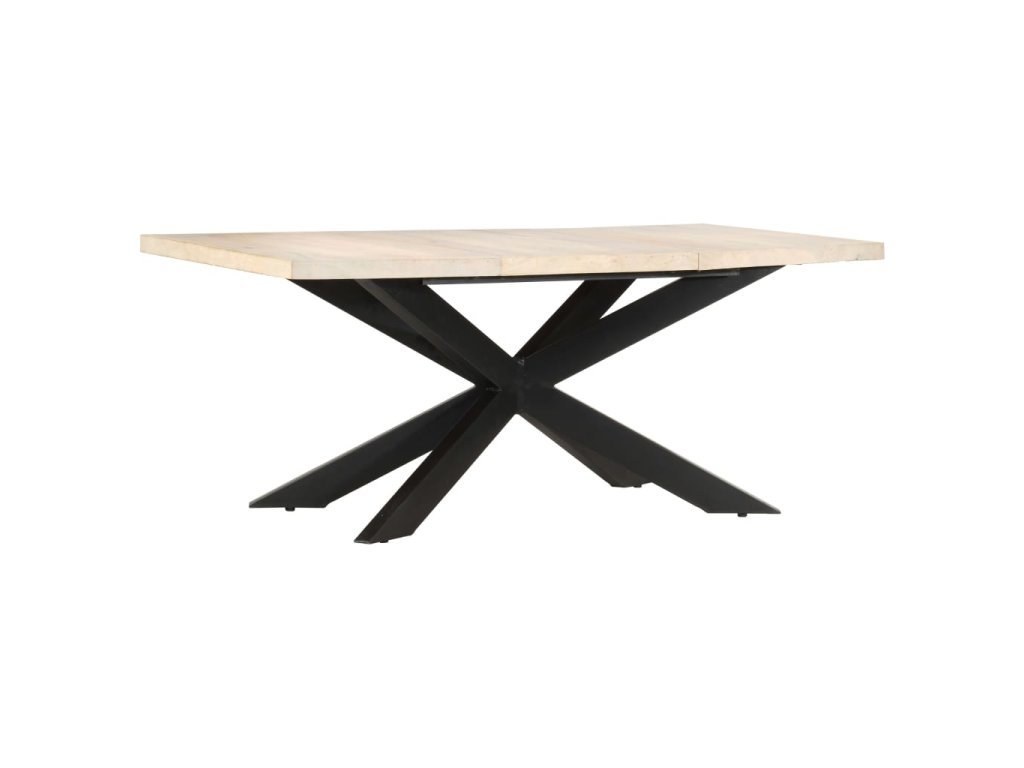 Jídelní stůl je vyroben z masivního mangovníkového dřeva s běleným povrchem, což mu propůjčuje moderní vzhled. Mangovníkové dřevo je stabilní, odolné a krásné a pod zkušenými nástroji řemeslníků se proměnilo v působivý jídelní stůl v retro stylu. Celý stůl je ručně vyrobený a každý krok procesu se provádí s tou největší péčí. Stabilitu stolu zaručují ocelové nohy ve tvaru kříže. Sestavení jídelního stolu je snadné.
