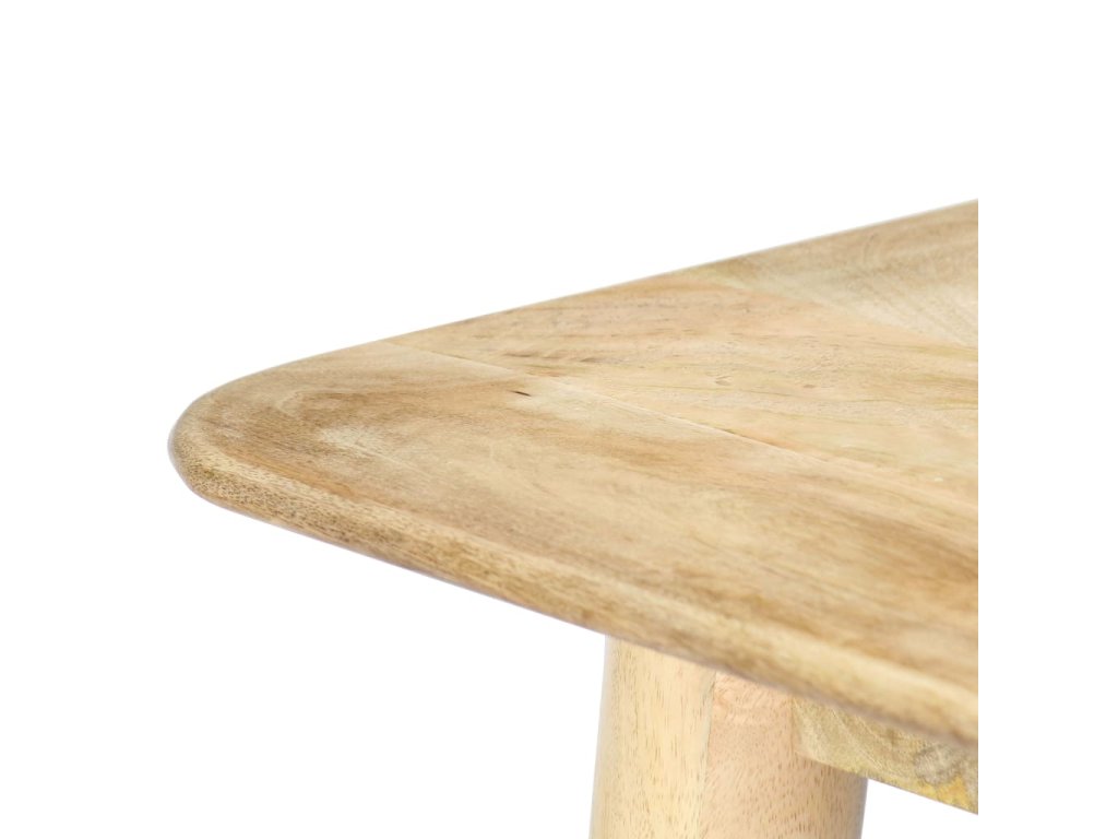 Jídelní stůl je vyroben z masivního mangovníku, což je husté a robustní tvrdé dřevo s povrchem, který se vyznačuje překrásnými hnědými nebo zlatými pruhy a liniemi. Stůl je celý ručně dělaný a každá fáze jeho výroby je prováděna s mimořádnou péčí, ať už je to leštění, natírání nebo lakování. Pevné kulaté nohy přispívají k pevnosti konstrukce.