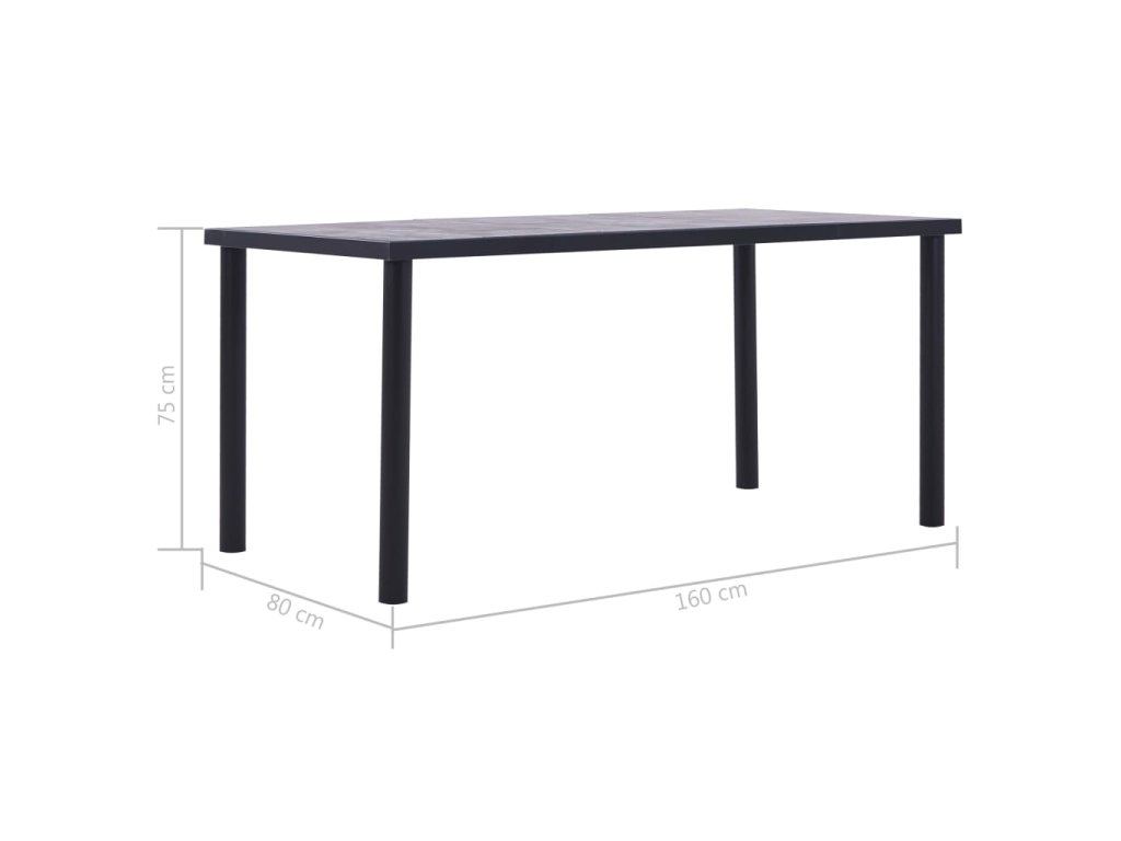 Jídelní stůl černý a betonově šedý 160 x 80 x 75 cm MDF 281859