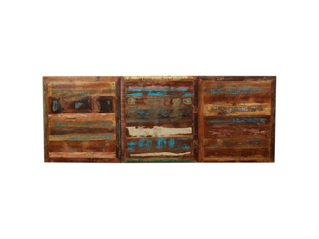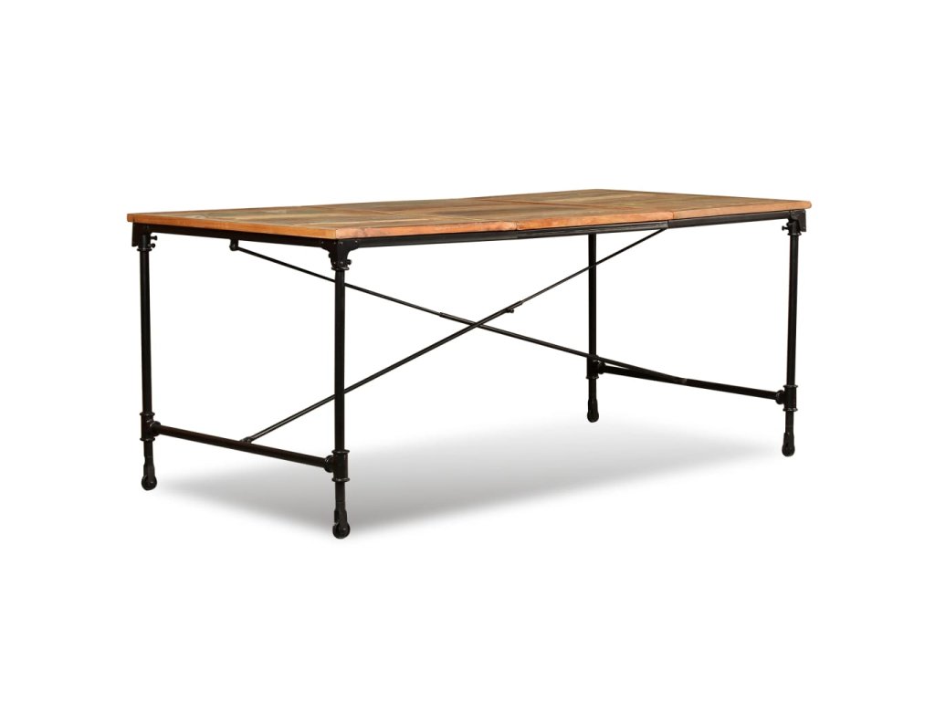 Jídelní stůl je vyrobený z masivního recyklovaného dřeva, což znamená, že má charakteristiky různých dřevin, jako je teak, mangovník, akácie atd. Recyklované dřevo je pevné, stabilní, odolné a zároveň krásné. Známky opotřebení a řemeslného zpracování dodávají každému kousku okouzlující vintage styl. Celkový industriální vzhled stolu je završen ocelovými nohami spolu s kvalitními litinovými kolečky, díky kterým se dá stůl snadno přemisťovat. Montáž je snadná.