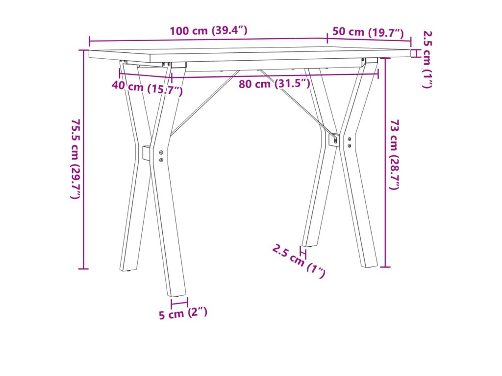 Jídelní stůl s Y rámem 100 x 50 x 75,5 cm borové dřevo a ocel 3282785