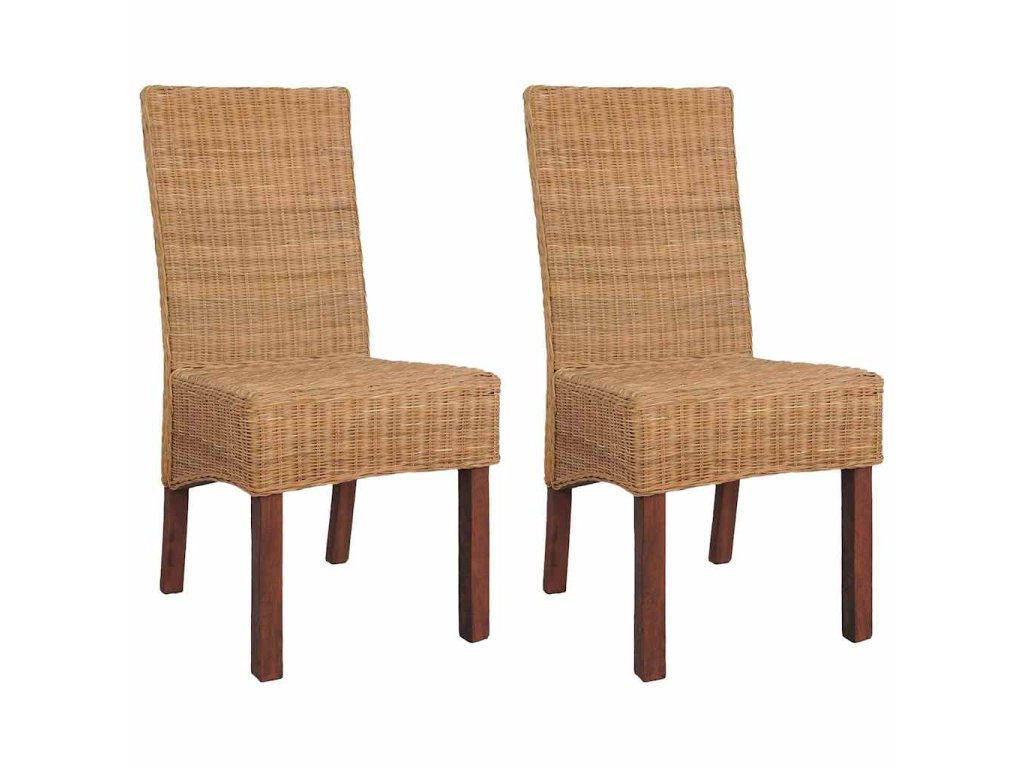 Tato originální sada jídelních židlí z pravého ratanu s tropickým vzhledem bude skvělým doplňkem do vašeho interiéru. Díky rámu z tvrdého dřeva a použití pravého ratanu mají tyto židle nejen robustní strukturu, ale jsou také příjemné po estetické stránce.