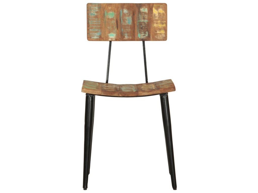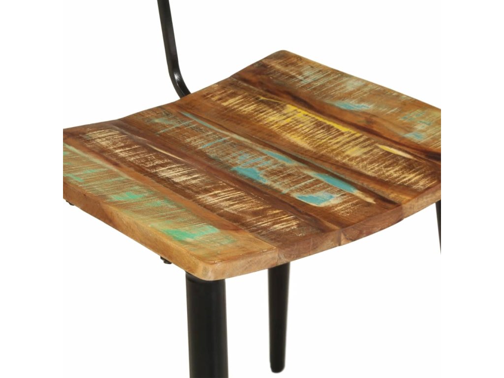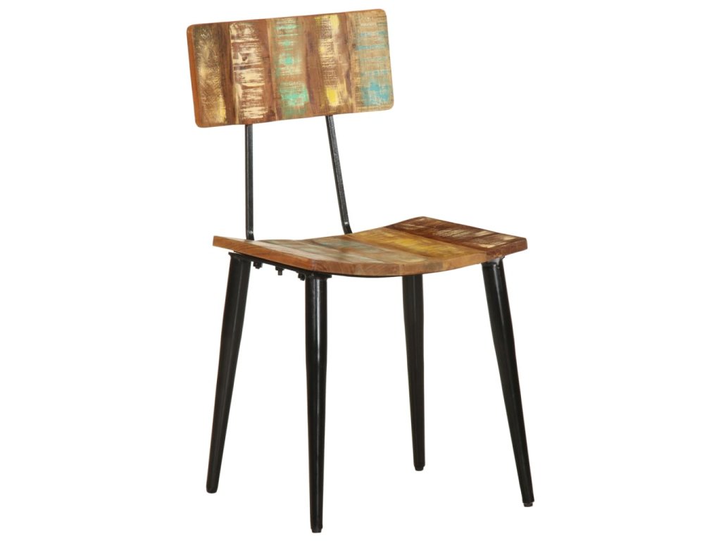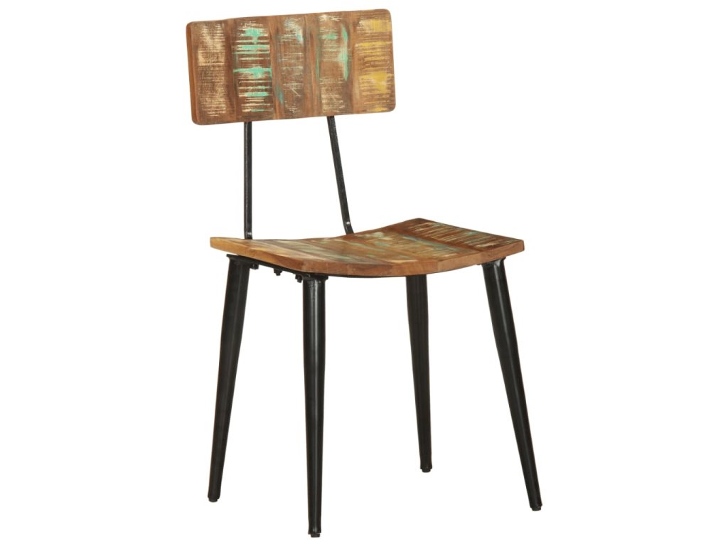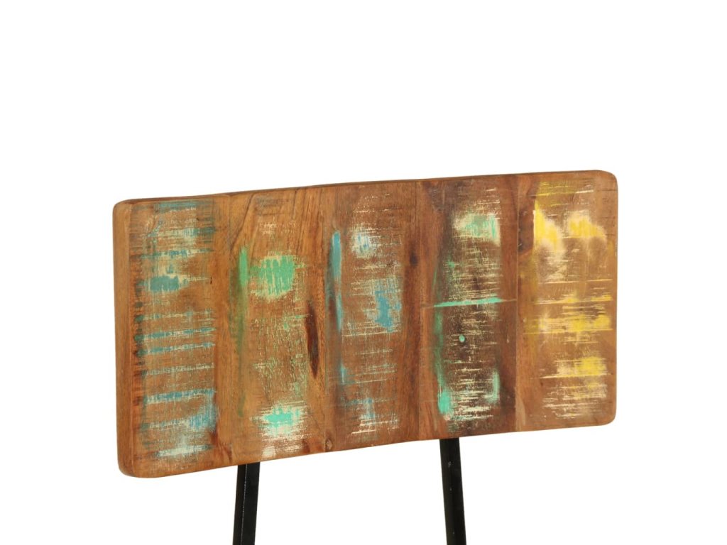 Tyto židle jsou vyrobeny z masivního recyklovaného dřeva, což znamená, že každý kus nábytku je jedinečný a mírně odlišný od ostatních. Nábytek je vyrobený z recyklovaného dřevo, které má charakteristiky různých druhů dřeva, jako je teak, mangovník a akácie. Recyklované dřevo je pevné, stabilní, odolné a krásné. Známky opotřebení a zřetelná kresba dřeva zase vypovídají o bohaté historii a každému kusu dodávají autentický vzhled. Tato sada židlí je ručně vyrobená a každý krok výrobního procesu je prováděn s nejvyšší péčí. Vícebarevná povrchová úprava podtrhuje jejich velkolepý retro styl.