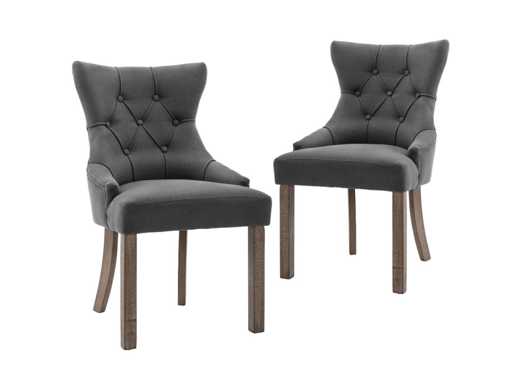 Design s krásnými knoflíky na opěradle těchto jídelních židlí je velmi atraktivní. Kuchyňské židle jsou čalouněné sametem, takže jsou měkké a příjemně se na nich sedí. Jejich silně polstrované sedáky a zaoblená opěradla vám zajistí optimální pohodlí. Nohy z kaučukovníkového dřeva zase přispívají k lepší stabilitě a zaručují židlím výtečnou odolnost.