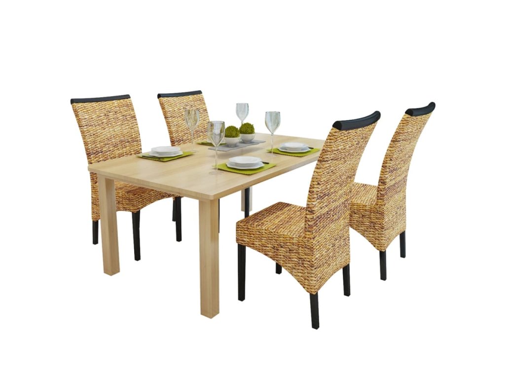 Rámy z tvrdého dřeva a přírodní abakové listy (banánové listy) dodávají židli nejen bytelnou strukturu, ale také estetický vzhled. Na sedadlech z abakového listí se navíc velmi pohodlně sedí. Pokud hledáte něco, co vhodně doplní zařízení vaší kuchyně nebo jídelny, tyto vyplétané židle budou skvělou volbou.