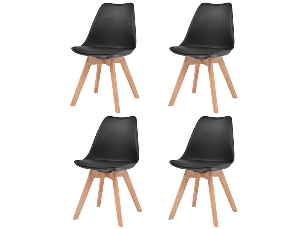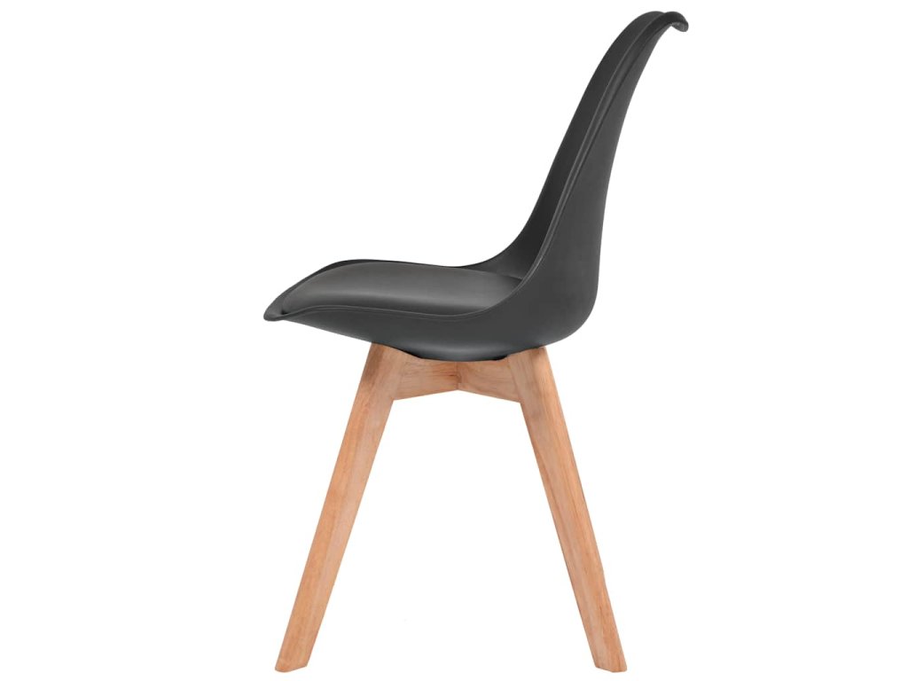Židle mají ergonomicky tvarovaný sedák s integrovaným opěradlem, které vyniká svým moderním zaobleným tvarem. Jsou velmi pohodlné, neboť mají integrované podušky na sedák z umělé kůže. Masivní dřevěné nohy dodávají těmto atraktivním židlím na robustnosti a odolnosti. Sestavení je opravdu snadné.