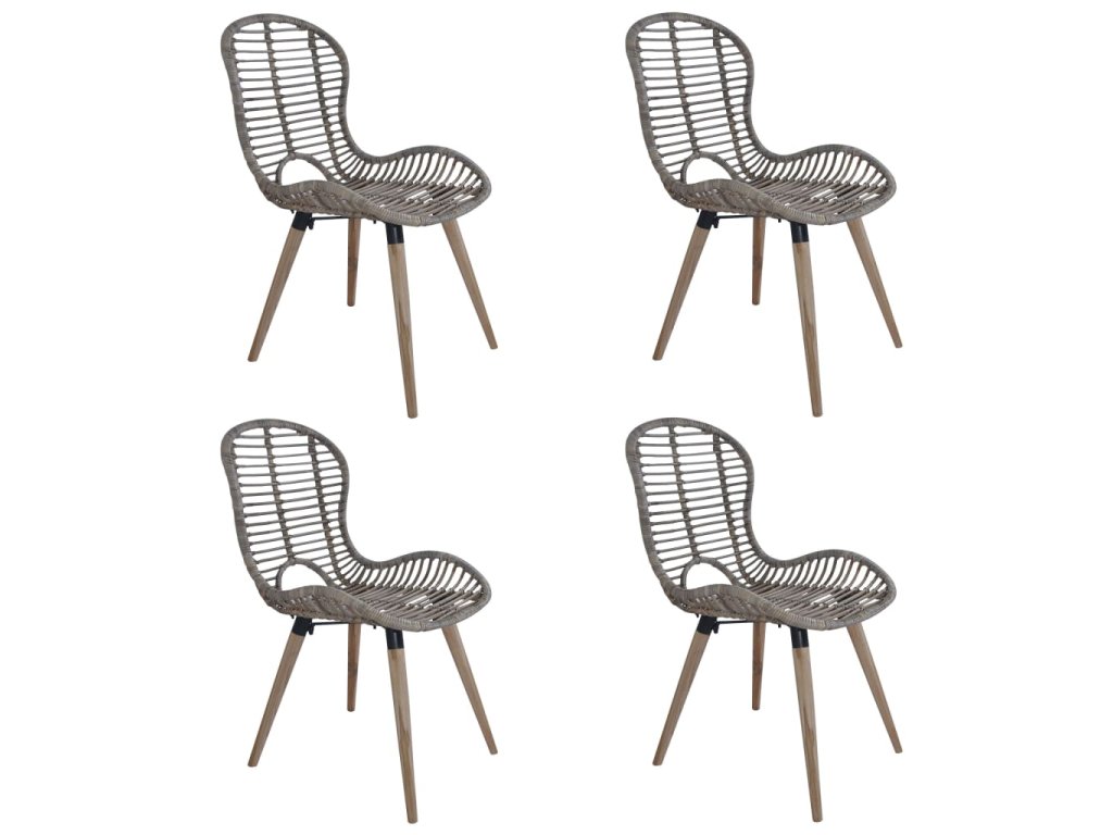 Sedáky a opěradla židlí jsou z přírodního ratanu, který je voděodolný a snadno se čistí. Dřevěné nohy zajišťují stabilitu a odolnost této sady nábytku, a také zdůrazňují její vintage styl. Tyto židle krásně zapadnou do každého prostředí a jejich sestavení je snadné. Balení obsahuje 4 jídelní židle.