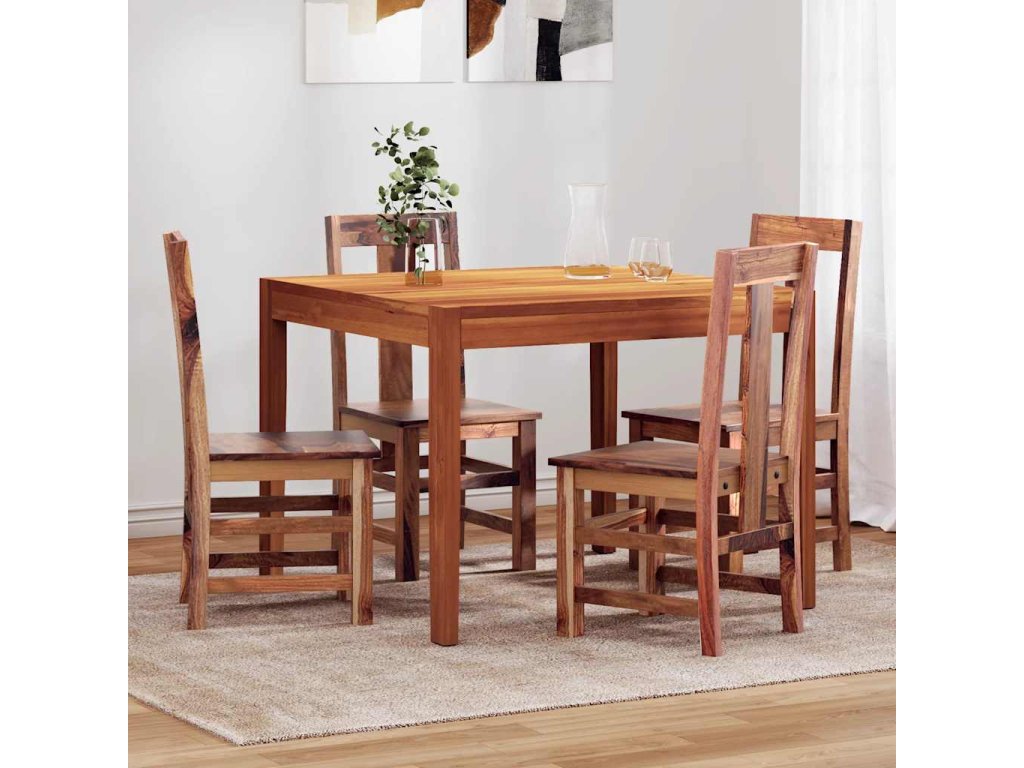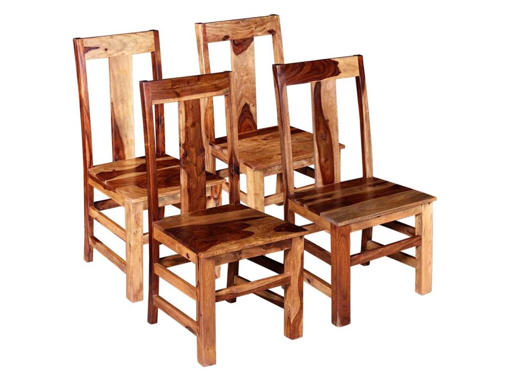 Tato sada 4 dřevěných jídelních židlí s nadčasovým designem vnese do vašeho domova nádech rustikálního kouzla. Tyto židle jsou vyrobeny z masivního dřeva s matnou povrchovou úpravou v medovém odstínu, jsou proto odolné a snadno se udržují. Překrásná kresba dřeva činí každou z našich židlí jedinečnou a lehce odlišnou od ostatních.