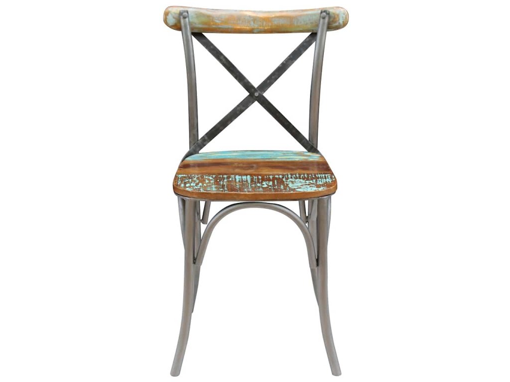 Židle s ocelovým rámem je stabilní a robustní. Tyto židle jsou vyrobené z masivního recyklovaného dřeva, což znamená, že každý kus nábytku je jedinečný a mírně se liší od dalšího. Nábytek je vyrobený z rekultivovaného dřeva a má vlastnosti různých dřevin, jako jsou teak, palisandr, mangovník a akácie. Rekultivované dřevo je pevné, stabilní, odolné a krásné. Známky opotřebení a viditelná struktura dřeva dávají každému kusu svou vlastní historii a jedinečný vzhled.