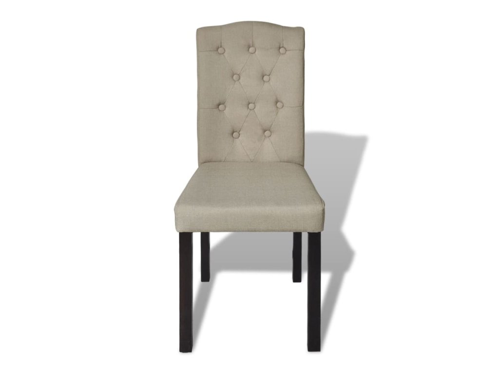 Tato sada 4 vkusných židlí v chesterfield provedení se vyznačuje klasickým designem a decentní elegancí. Komfortní textilní čalounění s plátěným vzhledem nabízí příjemné posezení a hodí se perfektně do velkého množství stylů zařízení interiérů.